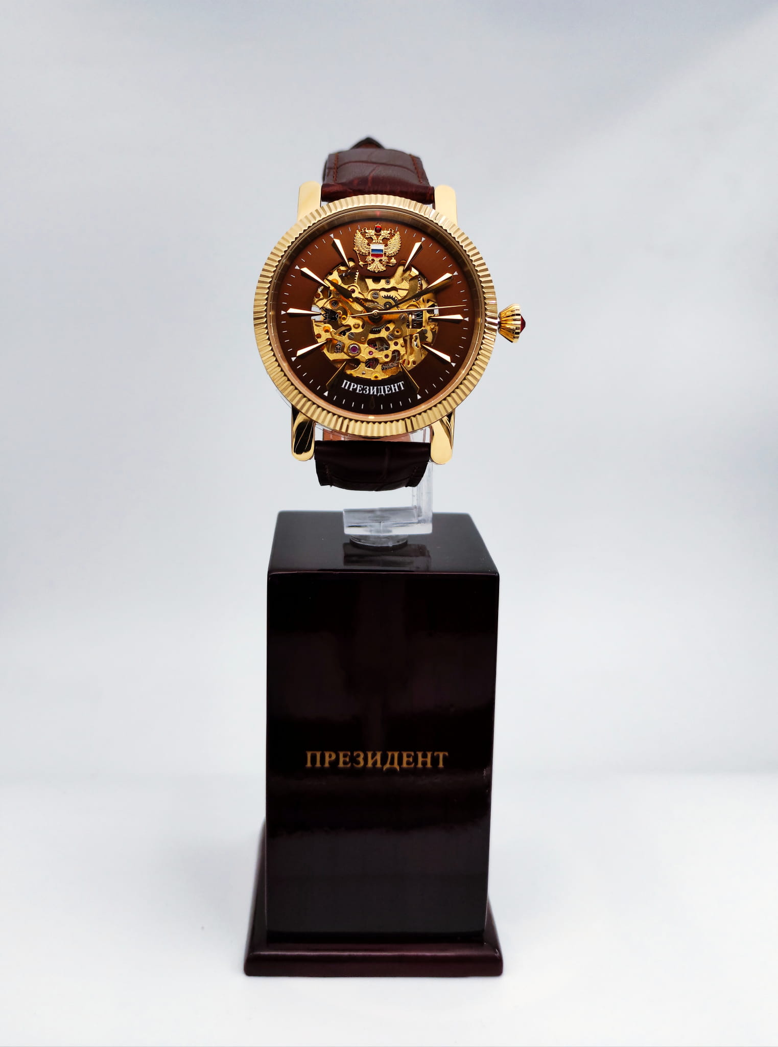 Часы «Президент» модели 4506150 — это мужские механические наручные часы с автоподзаводом, сочетающие элегантный дизайн и надёжность. Механизм: японский механизм Miyota с автоподзаводом, обеспечивающий точность и долговечность. Функции: часы, минуты, секунды. Корпус: из нержавеющей стали с PVD-покрытиемPVDУльтратонкое покрытие наносится в технике вакуумного напыления, сочетает в себе нитрид титана особой прочности со слоем золота или оксида хрома. Несёт в себе декоративную или защитную функцию., диаметром 42 мм. Стекло: минеральноеМинеральное стеклоМинеральное стекло представляет собой искусственно выращенный минерал кварца. Такое стекло отличается особой устойчивостью к повреждениям и царапинам. Уступает по некоторым качествам сапфировому стеклу., устойчивое к царапинам. Ремешок: кожаный, обеспечивающий комфорт при ношении. Эти часы станут идеальным выбором для тех, кто ценит стиль, качество и надёжность.