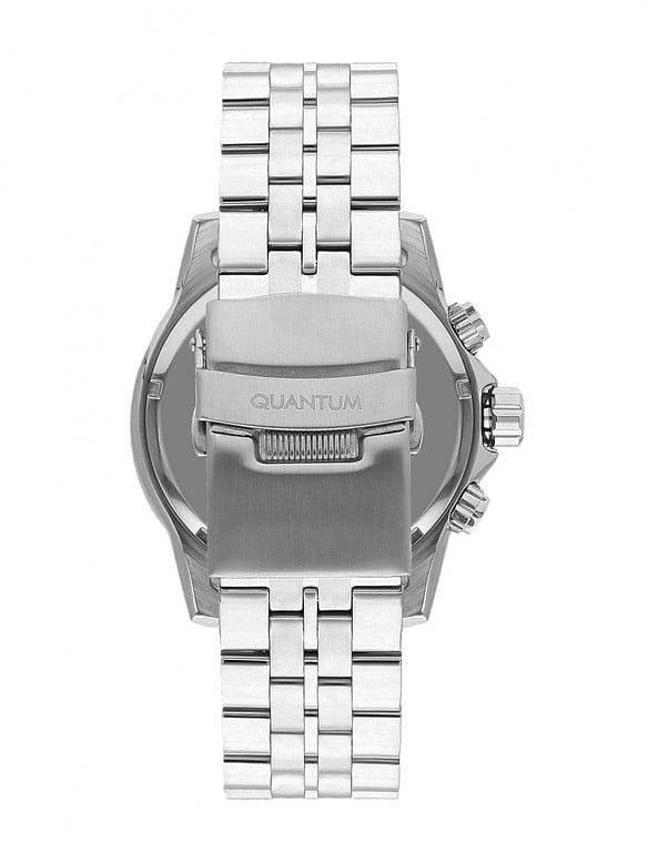 Мужские наручные часы-хронографХронографФункция позволяет измерять отрезки времени с особой точностью: часы, минуты, секунды. Верным признаком хронографа является наличие на циферблате 3 дополнительных окошек-счётчиков. Quantum PWG1036.360, кварцевый механизм с высокой точностью. Минеральное стеклоМинеральное стеклоМинеральное стекло представляет собой искусственно выращенный минерал кварца. Такое стекло отличается особой устойчивостью к повреждениям и царапинам. Уступает по некоторым качествам сапфировому стеклу. устойчивое к появлению царапин, обладающее высокой прозрачностью. Класс водозащиты: 100 метров, позволит плавать, нырять и заниматься другими водными видами спорта. Корпус часов изготовлен из нержавеющей стали. Стрелки и метки с люминесцентным покрытиемЛюминесцентное покрытиеПозволяет считывать показания времени в темноте. Производители наносят на стрелки, часовые индексы, безель или поверхность циферблата светонакопительный состав, дающий холодное свечение.. БезельБезельВнешний ободок, закрепляющий стекло. В спортивных часах так называется поворотное кольцо с делениями на циферблате, выполняет роль таймера – замеряет отрезки времени на шкале. Неподвижный безель – элемент декора. Однонаправленно вращающийся безель на дайверских часах позволяет фиксировать моменты погружения и выныривания на поверхность. с PVD-покрытиемPVDУльтратонкое покрытие наносится в технике вакуумного напыления, сочетает в себе нитрид титана особой прочности со слоем золота или оксида хрома. Несёт в себе декоративную или защитную функцию.. Стальной браслет на раскладной застёжкеРаскладная застёжкаТакой тип застёжки используется только на браслетах из металла. Она никогда не раскрывается полностью, происходит разделение на 2 и более частей. Раскладывающая застёжка снизит вероятность потери часов к минимуму..