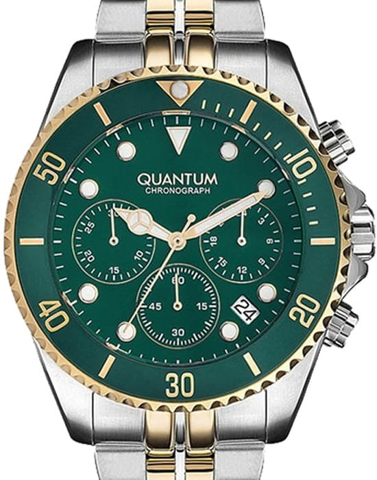 Мужские часы c хронографомХронографФункция позволяет измерять отрезки времени с особой точностью: часы, минуты, секунды. Верным признаком хронографа является наличие на циферблате 3 дополнительных окошек-счётчиков. Quantum PWG930.270, кварцевый механизм с высокой точностью. Минеральное стеклоМинеральное стеклоМинеральное стекло представляет собой искусственно выращенный минерал кварца. Такое стекло отличается особой устойчивостью к повреждениям и царапинам. Уступает по некоторым качествам сапфировому стеклу. устойчивое к появлению царапин, обладающее высокой прозрачностью. Класс водозащиты: 100 метров, позволит плавать, нырять и заниматься другими водными видами спорта. Корпус часов изготовлен из нержавеющей стали. Стрелки и метки с люминесцентным покрытиемЛюминесцентное покрытиеПозволяет считывать показания времени в темноте. Производители наносят на стрелки, часовые индексы, безель или поверхность циферблата светонакопительный состав, дающий холодное свечение.. Стальной браслет на раскладной застёжкеРаскладная застёжкаТакой тип застёжки используется только на браслетах из металла. Она никогда не раскрывается полностью, происходит разделение на 2 и более частей. Раскладывающая застёжка снизит вероятность потери часов к минимуму. с IP-покрытиемIP-покрытиеМетод ионного напыления. Демонстрирует повышенную устойчивость к истиранию, окислению и химическим веществам. Под воздействием высокого давления и температуры около 1500°C молекулы металла надёжно соединяются с частицами корпуса часов.. БезельБезельВнешний ободок, закрепляющий стекло. В спортивных часах так называется поворотное кольцо с делениями на циферблате, выполняет роль таймера – замеряет отрезки времени на шкале. Неподвижный безель – элемент декора. Однонаправленно вращающийся безель на дайверских часах позволяет фиксировать моменты погружения и выныривания на поверхность. с IP-покрытиемIP-покрытиеМетод ионного напыления. Демонстрирует повышенную устойчивость к истиранию, окислению и химическим веществам. Под воздействием высокого давления и температуры около 1500°C молекулы металла надёжно соединяются с частицами корпуса часов..