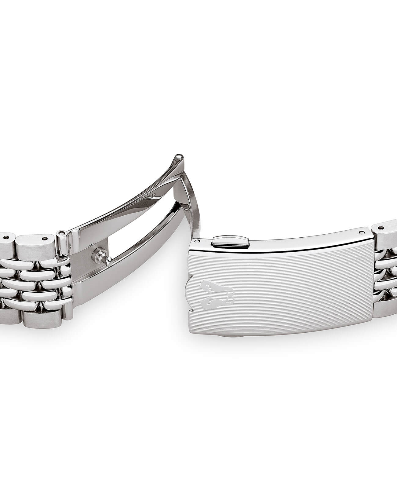 Премиальная модель стала современной интерпретацией знаковой линейки 1957 года, воплощающей ретро-элементы в новом формате. Циферблат в лаконичном исполнении дополнен фирменными логотипами. Часы выполнены из долговечной стали 316L, исключением стал фигурный безельБезельВнешний ободок, закрепляющий стекло. В спортивных часах так называется поворотное кольцо с делениями на циферблате, выполняет роль таймера – замеряет отрезки времени на шкале. Неподвижный безель – элемент декора. Однонаправленно вращающийся безель на дайверских часах позволяет фиксировать моменты погружения и выныривания на поверхность. из сплава Ceramos™CeramosМатериал являет собой инновационное сочетание высокотехнологичной керамики и сплава металла. Он объединяет керамическую устойчивость к царапинам и металлический роскошный блеск. . Автоматический калибр ETA C07.611 швейцарского производства с запасом хода на 80 часов. Для защиты циферблата и прозрачной задней крышки выбрано сапфировое стекло. Водонепроницаемость WR 50. Браслет с . Прямоугольная апертура даты. Диаметр корпуса: 41,8 мм.