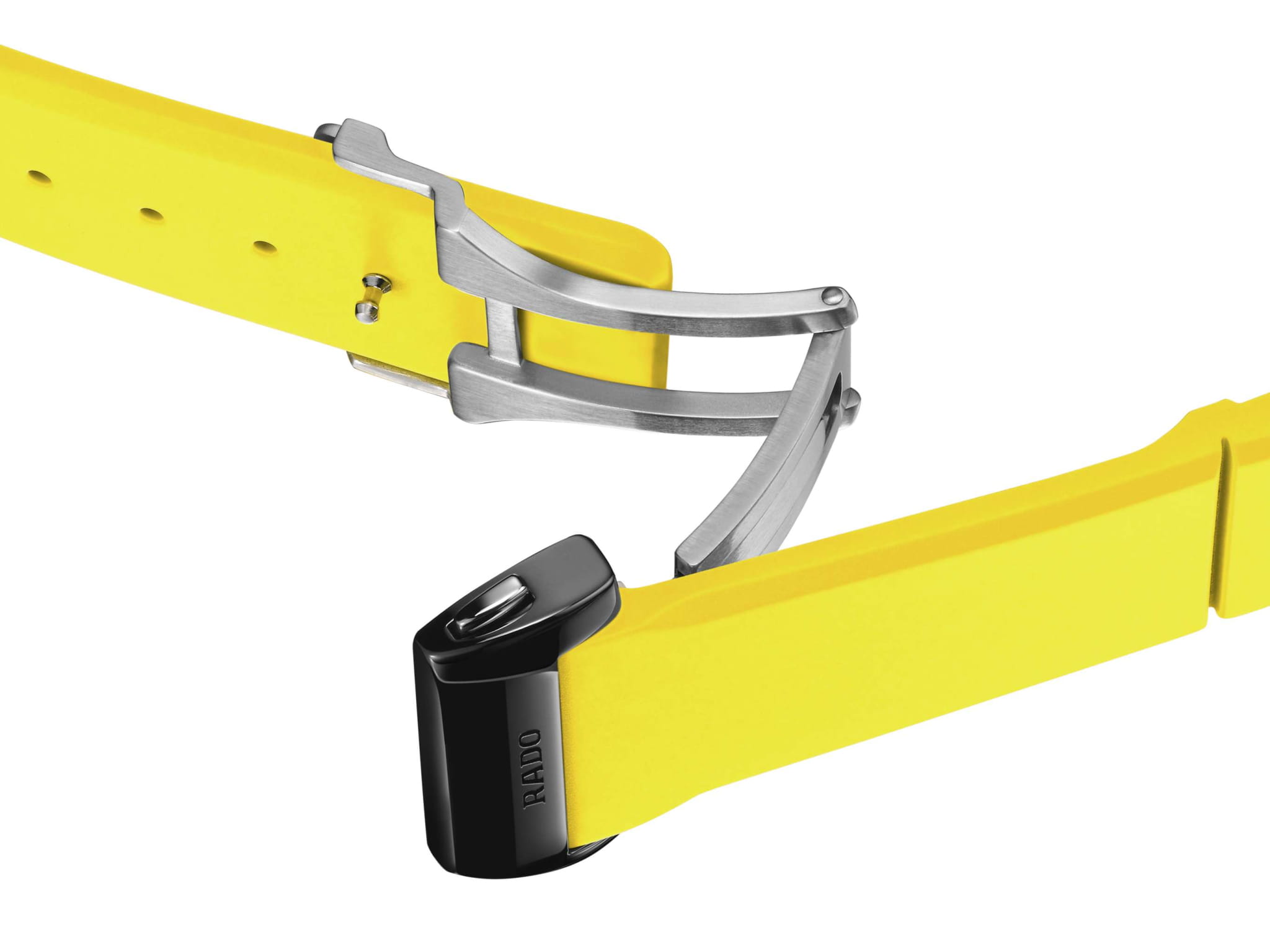 Универсальные механические часы с автоподзаводом Rado Anatom — это символ новаторского дизайна и максимального комфорта. Корпус размером 32,5 мм и толщиной 11,3 мм выполнен из высокотехнологичной керамикиВысокотехнологичная керамикаИнновационный запатентованный Rado материал с гладкой или матовой поверхностью. Керамика за счёт кристаллической структуры обладает повышенной устойчивостью от возникновения царапин. Материал способен принимать температуру тела человека, обеспечивая невероятный комфорт при ношении. и нержавеющей стали. Циферблат с градиентом от чёрного к лимонно-жёлтому оформлен накладными индексами и стрелками с люминесцентным покрытиемЛюминесцентное покрытиеПозволяет считывать показания времени в темноте. Производители наносят на стрелки, часовые индексы, безель или поверхность циферблата светонакопительный состав, дающий холодное свечение. Super-Luminova®, обеспечивающим отличную читаемость в темноте. Циферблат защищён сапфировым стекломСапфировое стеклоПрочный и надёжный материал из кристалла сапфира синтетического происхождения, характеризующийся особой твёрдостью и устойчивостью к царапинам и повреждениям. с металлизированным покрытием и симметричными фасками. В положении 12 часов расположен подвижной якорь — символ бренда, а в положении 6 часов — окошко даты. Механизм — автоматический с антимагнитной пружиной Nivachron™Nivachron™Специально разработанный инновационный сплав Nivachron™ повышает устойчивость часов к воздействию магнитных полей., отрегулированный в пяти положениях, с запасом хода 72 часа. Прозрачная задняя крышка с сапфировым стеклом позволяет наблюдать за работой механизма. Часы оснащены конусообразным каучуковым ремешком лимонно-жёлтого цвета и трёхсекционной застёжкой из матовой нержавеющей стали с крышкой из полированной керамики. Водонепроницаемость 50 м позволяет использовать часы в повседневных условиях. Гарантия — 2 года. Идеальный выбор для тех, кто ценит уникальный дизайн, комфорт и швейцарское качество.