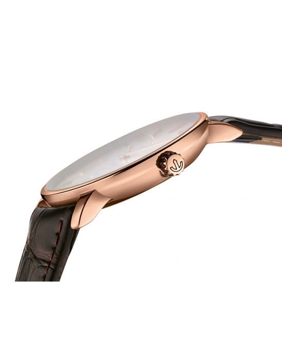 Наручные часы с минималистичным светлым циферблатом «солнечные лучи» дополнены золотистыми тонкими стрелками и часовыми метками. Аксессуар выполнен в классическом стиле, что делает его лучшим вариантом для деловой встречи или повседневной прогулки. Работа часов обеспечивается автоматическим калибром ETA A31.L01 с 64-часовым запасом хода. Надёжный корпус из инновационного материала Ceramos™CeramosМатериал являет собой инновационное сочетание высокотехнологичной керамики и сплава металла. Он объединяет керамическую устойчивость к царапинам и металлический роскошный блеск. . Антибликовое покрытие сапфирового стекла. PVD-покрытиеPVDУльтратонкое покрытие наносится в технике вакуумного напыления, сочетает в себе нитрид титана особой прочности со слоем золота или оксида хрома. Несёт в себе декоративную или защитную функцию.. Апертура даты на позиции 6 часов. Диаметр корпуса: 40,3 мм.