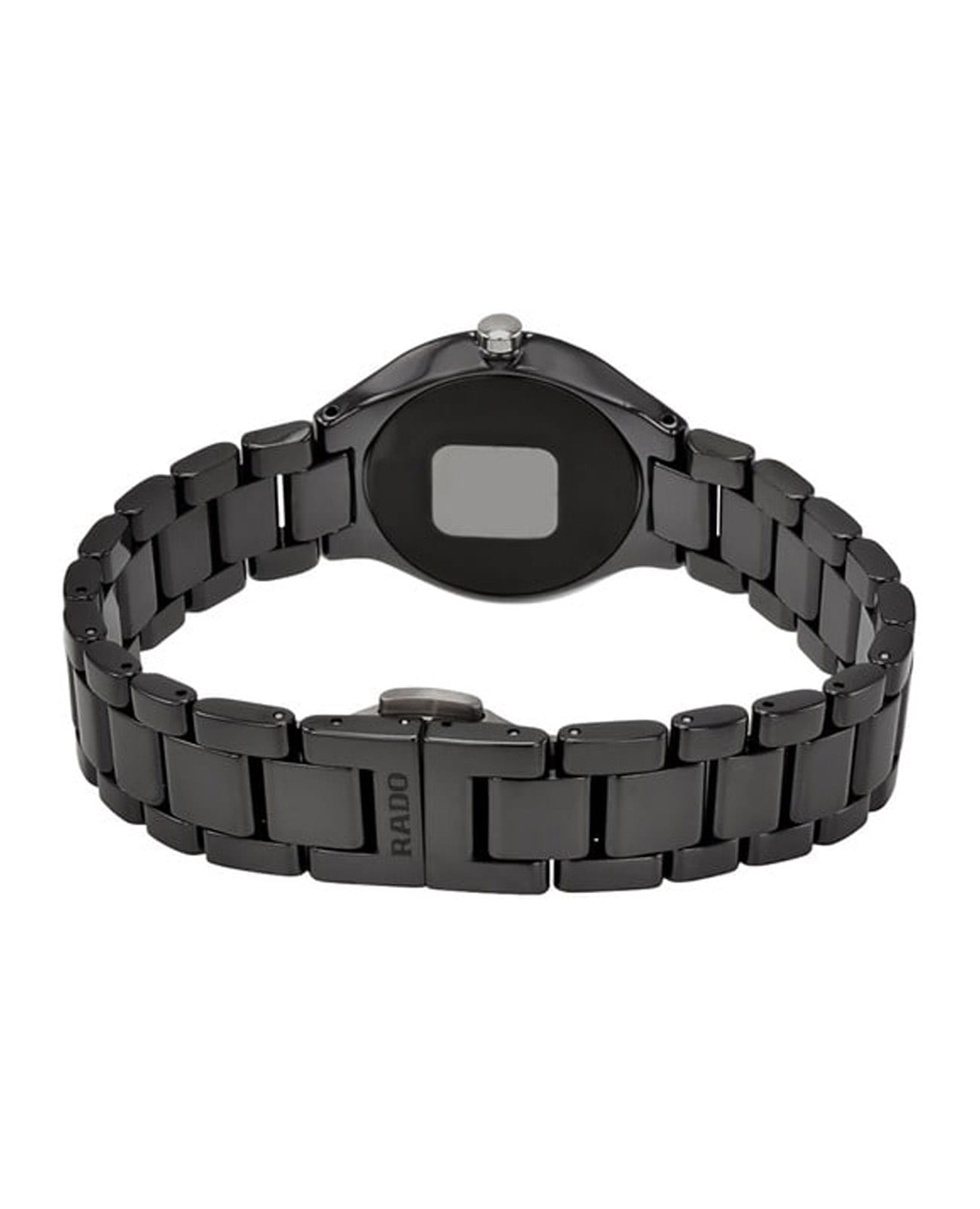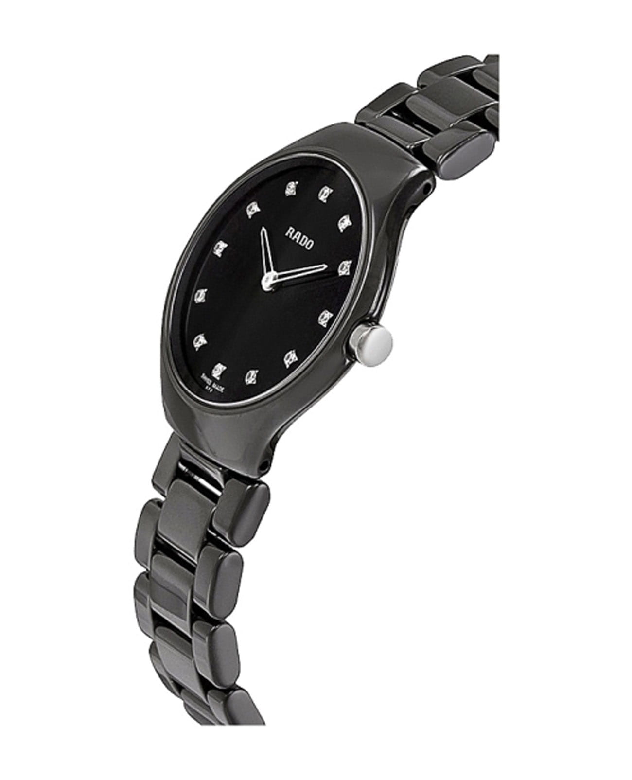 Швейцарские женские Rado True Thinline Diamonds R27742732, кварцевый механизм с высокой точностью. Сапфировое стеклоСапфировое стеклоПрочный и надёжный материал из кристалла сапфира синтетического происхождения, характеризующийся особой твёрдостью и устойчивостью к царапинам и повреждениям. устойчивое к появлению царапин, обладающее высокой прозрачностью. Корпус часов изготовлен из высокотехнологичной керамикиВысокотехнологичная керамикаИнновационный запатентованный Rado материал с гладкой или матовой поверхностью. Керамика за счёт кристаллической структуры обладает повышенной устойчивостью от возникновения царапин. Материал способен принимать температуру тела человека, обеспечивая невероятный комфорт при ношении.. Циферблат украшен бриллиантами. Класс водозащиты: 30 метров, позволит защитить корпус от случайных брызг или капель дождя. Керамический браслет на застёжке-бабочке с кнопкамиЗастёжка "бабочка"Такой вид застёжки дополняется предохранителями, помогающими избежать случайного раскрытия браслета. Обладают изящным исполнением. .