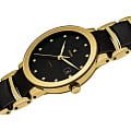 Аксессуар являет собой сочетание классической красоты и современного дизайна, отражающего минимализм. Его безупречная работа обеспечивается за счёт швейцарского автоматического механизма ETA 2671 с 38-часовым запасом хода. Прозрачная задняя крышка позволяет прикоснуться к часовому искусству и понаблюдать за движением деталей. Сапфировое стекло. Инкрустация 12 бриллиантами в 0,025 карат. Браслет из стали 316L с золотистым PVD-покрытиемPVDУльтратонкое покрытие наносится в технике вакуумного напыления, сочетает в себе нитрид титана особой прочности со слоем золота или оксида хрома. Несёт в себе декоративную или защитную функцию. и высокотехнологичной керамикиВысокотехнологичная керамикаИнновационный запатентованный Rado материал с гладкой или матовой поверхностью. Керамика за счёт кристаллической структуры обладает повышенной устойчивостью от возникновения царапин. Материал способен принимать температуру тела человека, обеспечивая невероятный комфорт при ношении.. Водонепроницаемость 30 метров. . Окошко даты. Диаметр корпуса: 28 мм.