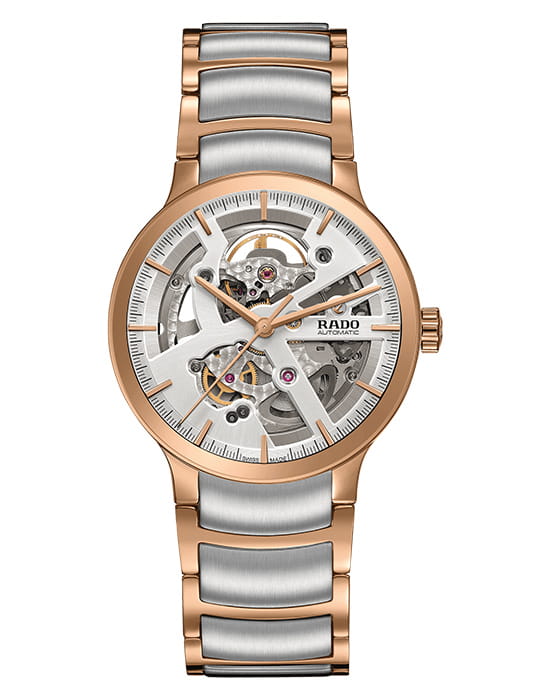 Часы-скелетоны станут главным атрибутом в создании индивидуального образа, оригинальная модель точно станет объектом притяжения окружающих. Внутри корпуса из нержавеющей стали заключён автоматический калибр ETA C07.631 с запасом хода 80 часов. Стальной браслет имеет вставки из высокотехнологичной керамикиВысокотехнологичная керамикаИнновационный запатентованный Rado материал с гладкой или матовой поверхностью. Керамика за счёт кристаллической структуры обладает повышенной устойчивостью от возникновения царапин. Материал способен принимать температуру тела человека, обеспечивая невероятный комфорт при ношении.. Стекло из сапфира устойчиво к образованию царапин. Водостойкость 3 бар. Диаметр корпуса: 38 мм.