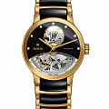 Швейцарские механические часы-скелетоны с автоподзаводом Rado Centrix Automatic Diamonds Open Heart R30246712. Сапфировое стеклоСапфировое стеклоПрочный и надёжный материал из кристалла сапфира синтетического происхождения, характеризующийся особой твёрдостью и устойчивостью к царапинам и повреждениям. устойчивое к мелким механическим повреждениям. Корпус часов изготовлен из нержавеющей стали с PVD-покрытиемPVDУльтратонкое покрытие наносится в технике вакуумного напыления, сочетает в себе нитрид титана особой прочности со слоем золота или оксида хрома. Несёт в себе декоративную или защитную функцию.. Класс водозащиты: 30 метров, позволит защитить корпус от случайных брызг или капель дождя. Браслет из стали PVD-покрытиемPVDУльтратонкое покрытие наносится в технике вакуумного напыления, сочетает в себе нитрид титана особой прочности со слоем золота или оксида хрома. Несёт в себе декоративную или защитную функцию. и высокотехнологичной керамикиВысокотехнологичная керамикаИнновационный запатентованный Rado материал с гладкой или матовой поверхностью. Керамика за счёт кристаллической структуры обладает повышенной устойчивостью от возникновения царапин. Материал способен принимать температуру тела человека, обеспечивая невероятный комфорт при ношении. на раскладной застёжкеРаскладная застёжкаТакой тип застёжки используется только на браслетах из металла. Она никогда не раскрывается полностью, происходит разделение на 2 и более частей. Раскладывающая застёжка снизит вероятность потери часов к минимуму..