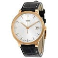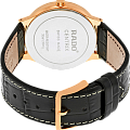Лаконичность и изящные формы делает часы идеальным решением для дополнения делового образа. Премиальный аксессуар демонстрирует безупречную точность хода благодаря швейцарскому кварцевому калибру ETA 955.112. Сапфировое стекло не допускает образования царапин. Корпус из нержавеющей стали 316L с PVD-покрытиемPVDУльтратонкое покрытие наносится в технике вакуумного напыления, сочетает в себе нитрид титана особой прочности со слоем золота или оксида хрома. Несёт в себе декоративную или защитную функцию.. Люминесцентная подсветкаЛюминесцентное покрытиеПозволяет считывать показания времени в темноте. Производители наносят на стрелки, часовые индексы, безель или поверхность циферблата светонакопительный состав, дающий холодное свечение.. Водостойкость 30 метров. Наручные часы выполнены из эксклюзивной кожи толщиной 20 мм, которая сочетает в себе комфорт и прочность. Апертура даты. Диаметр корпуса: 38 мм.