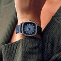Ремешок из синей телячьей кожи с фирменной строчкой в форме буквы "W" и раскладной застёжкойРаскладная застёжкаТакой тип застёжки используется только на браслетах из металла. Она никогда не раскрывается полностью, происходит разделение на 2 и более частей. Раскладывающая застёжка снизит вероятность потери часов к минимуму. с двойной системой безопасности обеспечивает комфортное ношение и надёжную фиксацию. Водозащита до 10 ATM делает часы подходящими для плавания и других водных активностей.