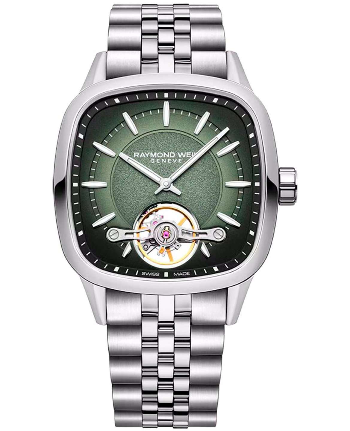 Неповторимые швейцарские часы Raymond Weil 2790-ST-52051 с высокоточным автоматическим швейцарским механизмом. Квадратный корпус выполнен из полированной нержавеющей стали (40×40 мм, толщина 10,5 мм) сочетает элегантность с прочностью, а сапфировое стеклоСапфировое стеклоПрочный и надёжный материал из кристалла сапфира синтетического происхождения, характеризующийся особой твёрдостью и устойчивостью к царапинам и повреждениям. с антибликовым покрытием защищает синий градиентный циферблат. Украшен люминесцентнымиЛюминесцентное покрытиеПозволяет считывать показания времени в темноте. Производители наносят на стрелки, часовые индексы, безель или поверхность циферблата светонакопительный состав, дающий холодное свечение. стрелками и метками Super-LumiNova для четкой видимости в темноте. Запас хода составляет 38 часов. Водонепроницаемость 100 метров (10 ATM) позволяет использовать часы при плавании, а завинчивающаяся заводная головка с логотипом RW усиливает защиту от влаги. Браслет с раскладывающейся застежкой. Застежка с двойной системой защиты.