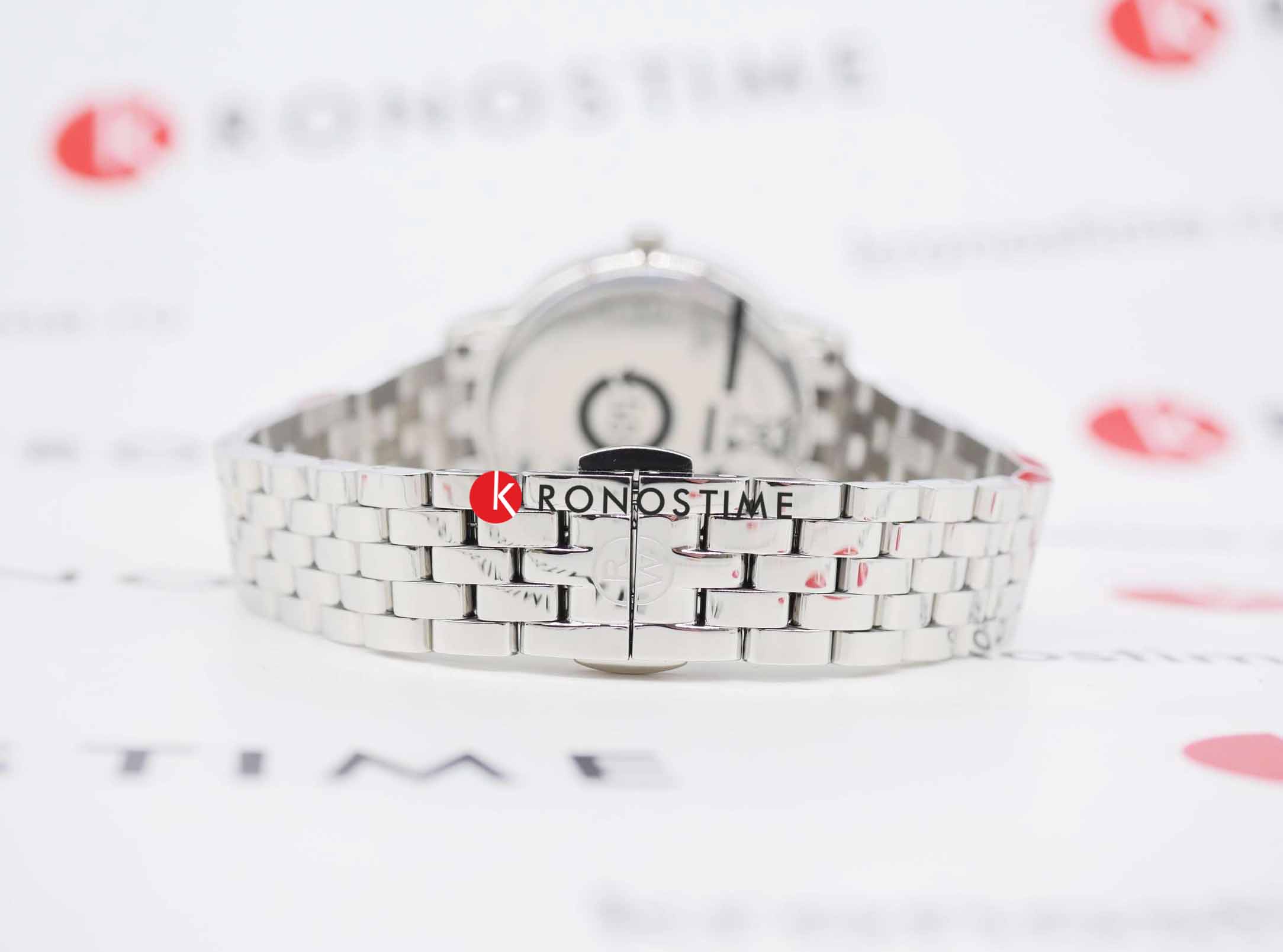 Raymond Weil Toccata (артикул 5385-ST-00659) — элегантные женские часы, сочетающие классический дизайн и функциональность. Корпус диаметром 34 мм выполнен из нержавеющей стали, что обеспечивает прочность и долговечность. Серебристый циферблат украшен римскими цифрами и синими стрелками, добавляя часам изысканности. Окошко даты на отметке «3 часа» обеспечивает удобство использования. Сапфировое стеклоСапфировое стеклоПрочный и надёжный материал из кристалла сапфира синтетического происхождения, характеризующийся особой твёрдостью и устойчивостью к царапинам и повреждениям. защищает часы от царапин, а водонепроницаемость до 50 метров делает их подходящими для повседневной носки. Надёжный кварцевый механизм гарантирует точность хода. Браслет из нержавеющей стали оснащён раскладной застёжкойРаскладная застёжкаТакой тип застёжки используется только на браслетах из металла. Она никогда не раскрывается полностью, происходит разделение на 2 и более частей. Раскладывающая застёжка снизит вероятность потери часов к минимуму. с двойной системой безопасности, что обеспечивает комфорт и надёжность при ношении.