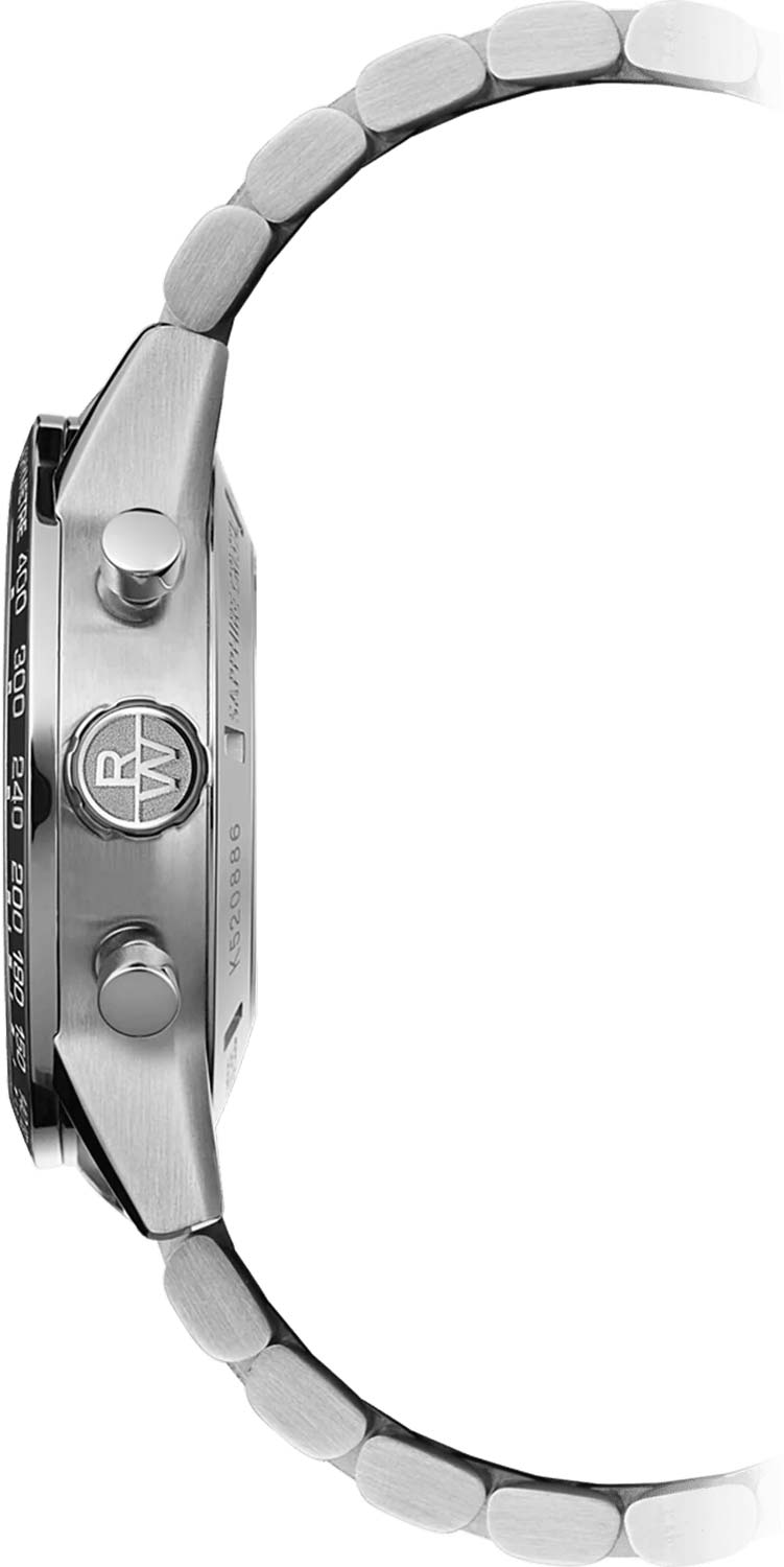 Циферблат с накладными метками в виде штрихов защищен прочным сапфировым стекломСапфировое стеклоПрочный и надёжный материал из кристалла сапфира синтетического происхождения, характеризующийся особой твёрдостью и устойчивостью к царапинам и повреждениям., а метки и стрелки имеют люминесцентное покрытиеЛюминесцентное покрытиеПозволяет считывать показания времени в темноте. Производители наносят на стрелки, часовые индексы, безель или поверхность циферблата светонакопительный состав, дающий холодное свечение., которое светится в темноте после небольшой зарядки на свету. БезельБезельВнешний ободок, закрепляющий стекло. В спортивных часах так называется поворотное кольцо с делениями на циферблате, выполняет роль таймера – замеряет отрезки времени на шкале. Неподвижный безель – элемент декора. Однонаправленно вращающийся безель на дайверских часах позволяет фиксировать моменты погружения и выныривания на поверхность. с керамической вставкой добавляет современный акцент. Завинчивающаяся задняя крышка и заводная головка с логотипом RW подчеркивают высокое качество.