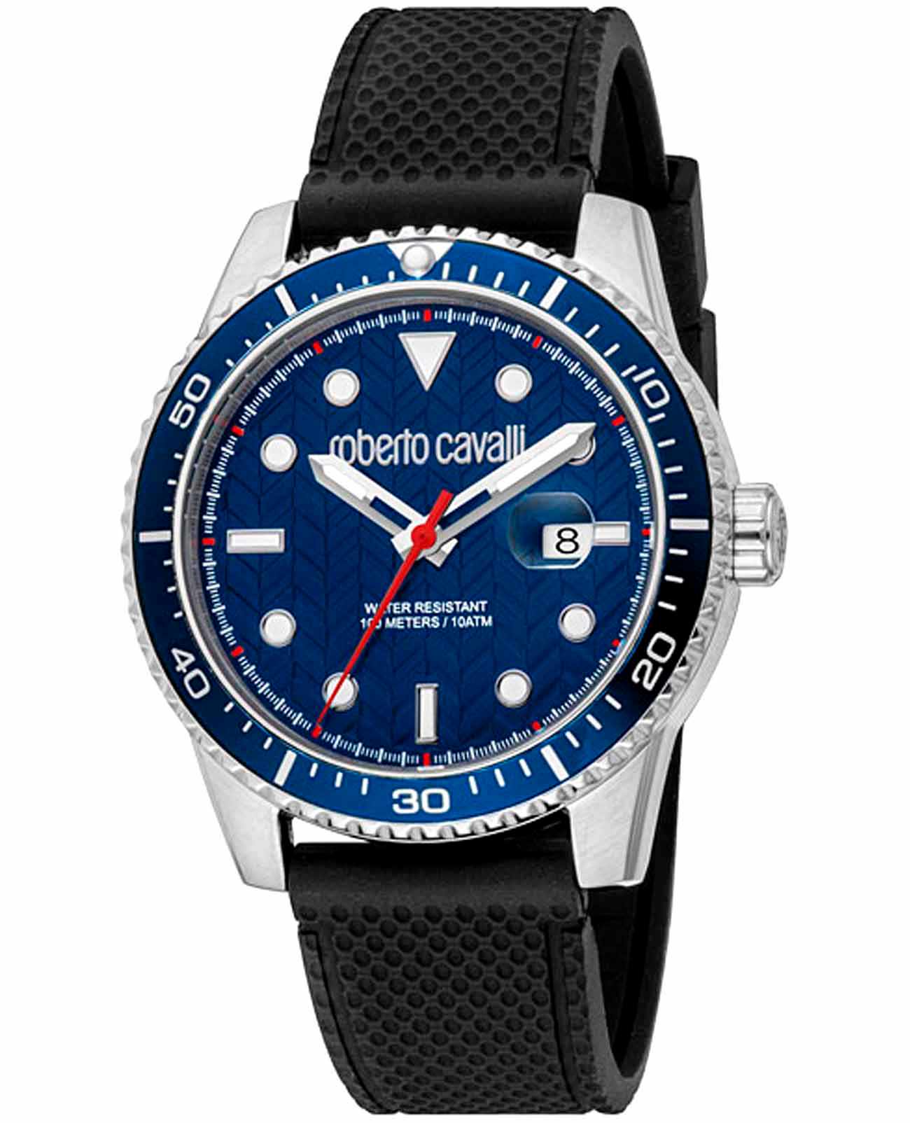 Погрузитесь в мир роскоши и безупречного стиля с мужскими наручными часами ROBERTO CAVALLI RC5G084P1015. Эти часы – воплощение смелого дизайна и итальянской элегантности, созданные для мужчины, который ценит внимание к деталям и не боится заявить о себе. Круглый корпус диаметром 42 мм выполнен из нержавеющей стали, толщина корпуса составляет 11 мм, что придает модели выразительный внешний вид и надежную защиту от внешних воздействий. Циферблат, искусно оформленный фирменными элементами Roberto Cavalli, притягивает взгляд и подчеркивает ваш безупречный вкус. Часы оснащены кварцевым механизмом, также обладают функцией отображения даты, что делает их удобными для ежедневного использования. Минеральное стеклоМинеральное стеклоМинеральное стекло представляет собой искусственно выращенный минерал кварца. Такое стекло отличается особой устойчивостью к повреждениям и царапинам. Уступает по некоторым качествам сапфировому стеклу. защищает часы от царапин. Водозащита 100 метров, позволит плавать, нырять и заниматься другими водными видами спорта. Силиконовый ремешок на стандартной застёжке обеспечивает комфортное ношение. Поворотный безельБезельВнешний ободок, закрепляющий стекло. В спортивных часах так называется поворотное кольцо с делениями на циферблате, выполняет роль таймера – замеряет отрезки времени на шкале. Неподвижный безель – элемент декора. Однонаправленно вращающийся безель на дайверских часах позволяет фиксировать моменты погружения и выныривания на поверхность. с PVD-покрытиемPVDУльтратонкое покрытие наносится в технике вакуумного напыления, сочетает в себе нитрид титана особой прочности со слоем золота или оксида хрома. Несёт в себе декоративную или защитную функцию.. Стрелки и метки с люминесцентным покрытиемЛюминесцентное покрытиеПозволяет считывать показания времени в темноте. Производители наносят на стрелки, часовые индексы, безель или поверхность циферблата светонакопительный состав, дающий холодное свечение. обеспечивают отличную читаемость в любое время суток.