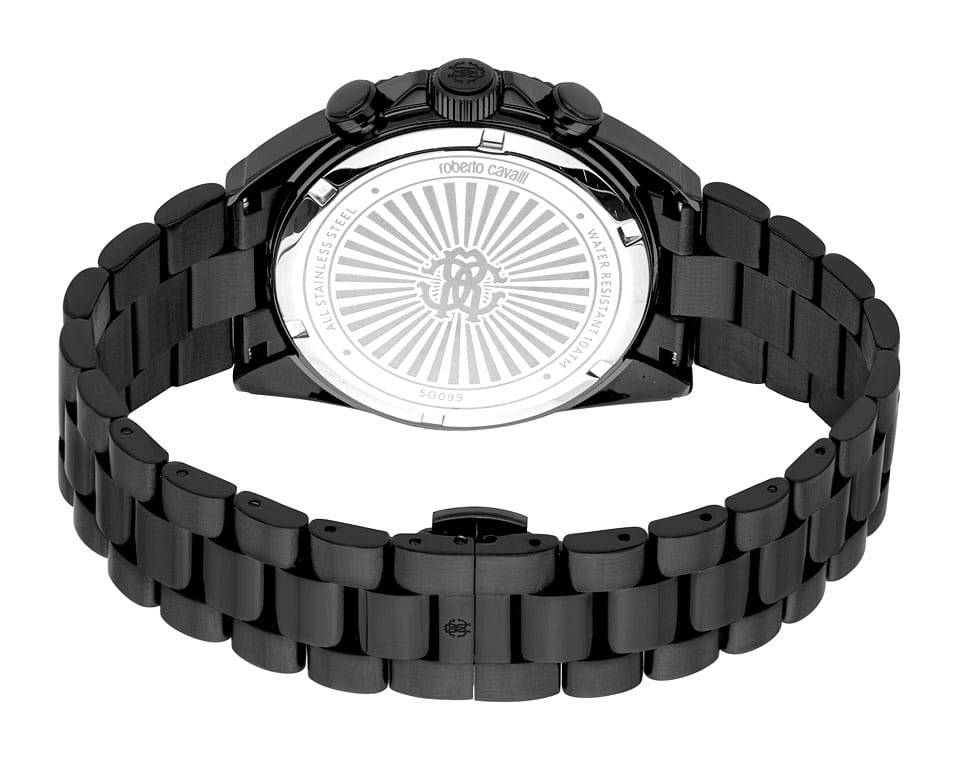 Погрузитесь в мир роскоши и безупречного стиля с мужскими наручными часами ROBERTO CAVALLI RC5G099M0055. Эти часы-хронографХронографФункция позволяет измерять отрезки времени с особой точностью: часы, минуты, секунды. Верным признаком хронографа является наличие на циферблате 3 дополнительных окошек-счётчиков. воплощение смелого дизайна и итальянской элегантности, созданные для мужчины, который ценит внимание к деталям и не боится заявить о себе. Круглый корпус диаметром 42 мм выполнен из нержавеющей стали с PVD-покрытиемPVDУльтратонкое покрытие наносится в технике вакуумного напыления, сочетает в себе нитрид титана особой прочности со слоем золота или оксида хрома. Несёт в себе декоративную или защитную функцию., толщина корпуса составляет 11 мм, что придает модели выразительный внешний вид и надежную защиту от внешних воздействий. Циферблат, искусно оформленный фирменными элементами Roberto Cavalli, притягивает взгляд и подчеркивает ваш безупречный вкус. Часы оснащены кварцевым механизмом, обладают функцией отображения даты, а также тахиметромТахиметрРазмеченная шкала, располагается на ободке или безеле часов. Тахиметр позволяет рассчитать скорость на определённом участке пути, расстояние измеряется в километрах или милях., что делает их удобными для ежедневного использования. Минеральное стеклоМинеральное стеклоМинеральное стекло представляет собой искусственно выращенный минерал кварца. Такое стекло отличается особой устойчивостью к повреждениям и царапинам. Уступает по некоторым качествам сапфировому стеклу. защищает часы от царапин. Водозащита 100 метров, позволит плавать, нырять и заниматься другими водными видами спорта. Стальной браслет на застёжке-бабочке с кнопкамиЗастёжка "бабочка"Такой вид застёжки дополняется предохранителями, помогающими избежать случайного раскрытия браслета. Обладают изящным исполнением. обеспечивает комфортное ношение. Стрелки и метки с люминесцентным покрытиемЛюминесцентное покрытиеПозволяет считывать показания времени в темноте. Производители наносят на стрелки, часовые индексы, безель или поверхность циферблата светонакопительный состав, дающий холодное свечение. обеспечивают отличную читаемость в любое время суток.