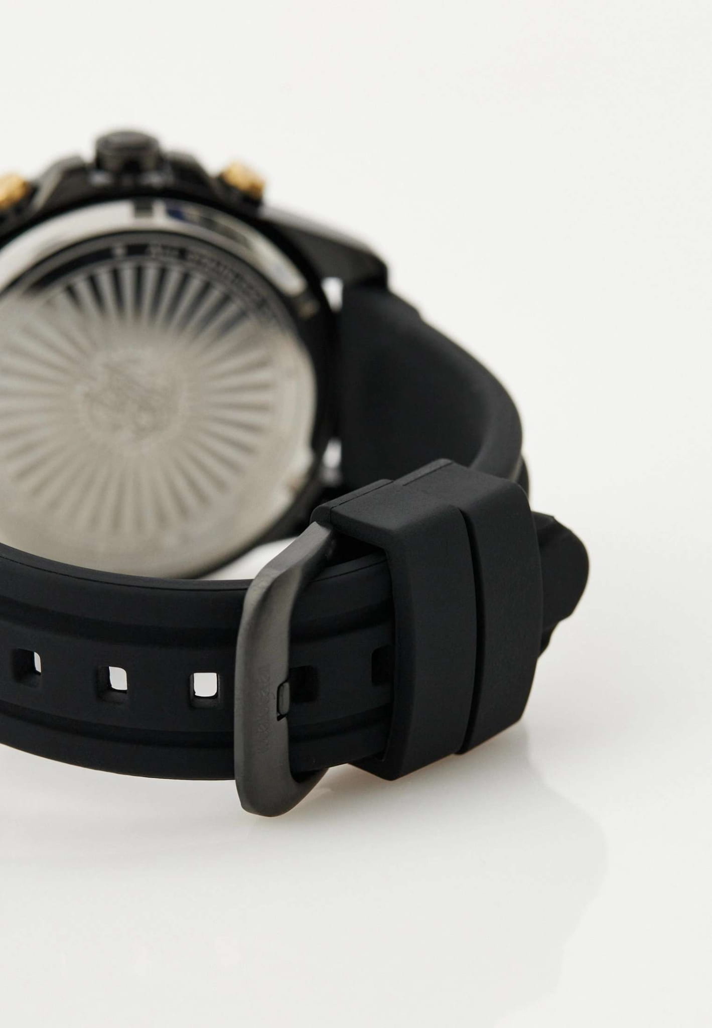 ROBERTO CAVALLI Uomo Sport III RC5G109P0035 — стильные итальянские часы-хронографХронографФункция позволяет измерять отрезки времени с особой точностью: часы, минуты, секунды. Верным признаком хронографа является наличие на циферблате 3 дополнительных окошек-счётчиков. сочетающие в себе элегантность и современный функционал. Корпус диаметром 42 мм выполнен из нержавеющей стали с PVD-покрытиемPVDУльтратонкое покрытие наносится в технике вакуумного напыления, сочетает в себе нитрид титана особой прочности со слоем золота или оксида хрома. Несёт в себе декоративную или защитную функцию., толщина корпуса составляет 9 мм, что придает модели выразительный внешний вид и надежную защиту от внешних воздействий. Циферблат, искусно оформленный фирменными элементами Roberto Cavalli, притягивает взгляд и подчеркивает ваш безупречный вкус. Часы оснащены кварцевым механизмом, также обладают функцией отображения даты, что делает их удобными для ежедневного использования. Минеральное стеклоМинеральное стеклоМинеральное стекло представляет собой искусственно выращенный минерал кварца. Такое стекло отличается особой устойчивостью к повреждениям и царапинам. Уступает по некоторым качествам сапфировому стеклу. защищает часы от царапин. Водозащита 100 метров позволит плавать, нырять и заниматься другими водными видами спорта. Силиконовый ремешок на стандартной застёжке обеспечивает комфортное ношение. Стрелки и метки с люминесцентным покрытиемЛюминесцентное покрытиеПозволяет считывать показания времени в темноте. Производители наносят на стрелки, часовые индексы, безель или поверхность циферблата светонакопительный состав, дающий холодное свечение. обеспечивают отличную читаемость в любое время суток.