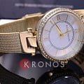 Модель с золотистым PVD-покрытиемPVDУльтратонкое покрытие наносится в технике вакуумного напыления, сочетает в себе нитрид титана особой прочности со слоем золота или оксида хрома. Несёт в себе декоративную или защитную функцию. смотрится оригинально благодаря сочетанию крупного циферблата и тонкого браслета, выполненного в технике «миланское плетение». БезельБезельВнешний ободок, закрепляющий стекло. В спортивных часах так называется поворотное кольцо с делениями на циферблате, выполняет роль таймера – замеряет отрезки времени на шкале. Неподвижный безель – элемент декора. Однонаправленно вращающийся безель на дайверских часах позволяет фиксировать моменты погружения и выныривания на поверхность. декорирован цирконами, их сияние гармонирует с лаконичным узором серединки. Кварцевый механизм обеспечивает высокую точность хода. Прочное минеральное стекло препятствует образованию царапин.