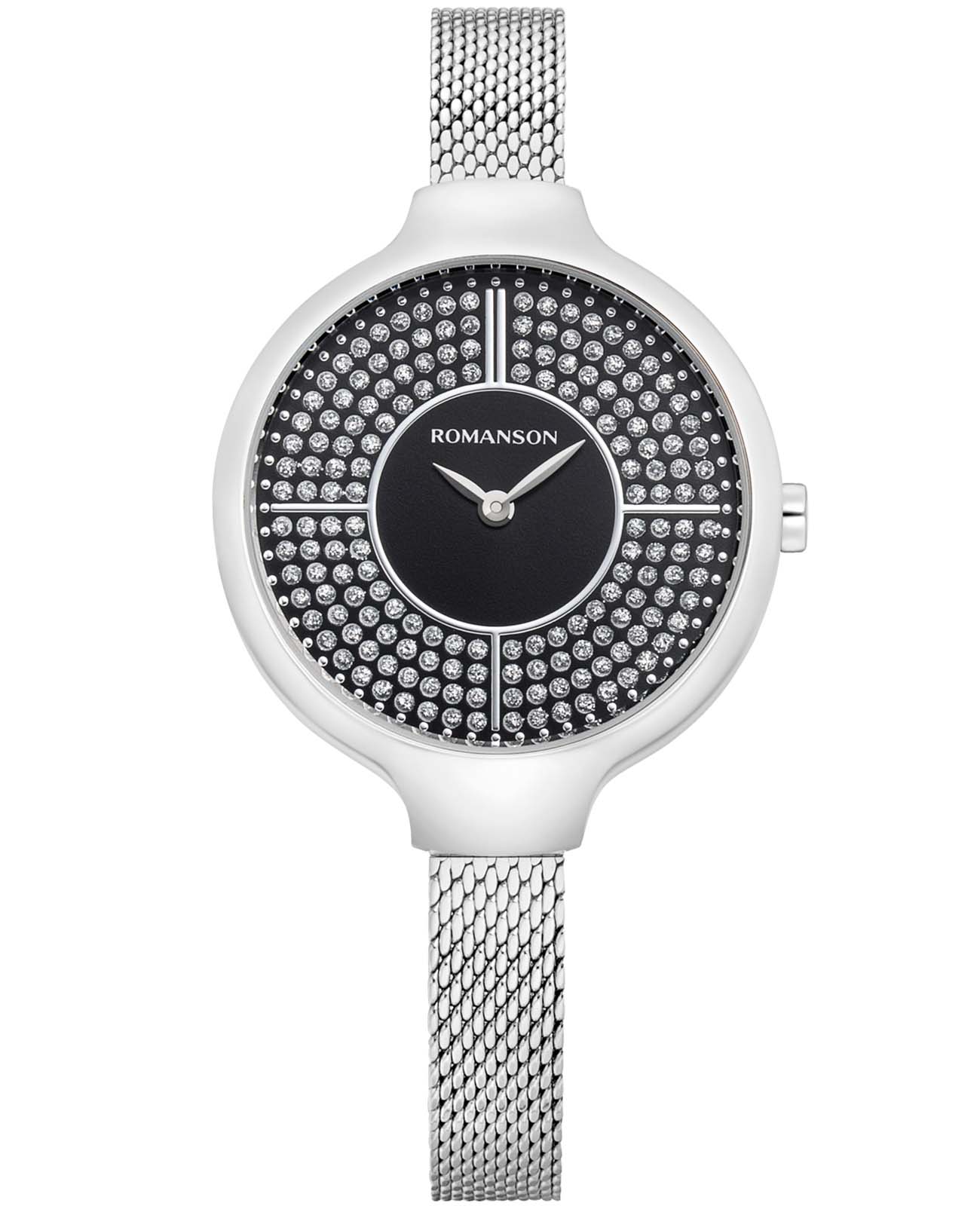 Женские наручные часы Romanson RM0B13LLW(BK) – образец красоты и изящества. Стильная модель станет главным украшением повседневного, делового, вечернего образа. Циферблат украшен сияющими кристаллами. Аксессуар выполнен из стали 316L, устойчивым к износу. Стальной браслет миланского плетения. Закаленное минеральное стекло препятствует появлению царапин.