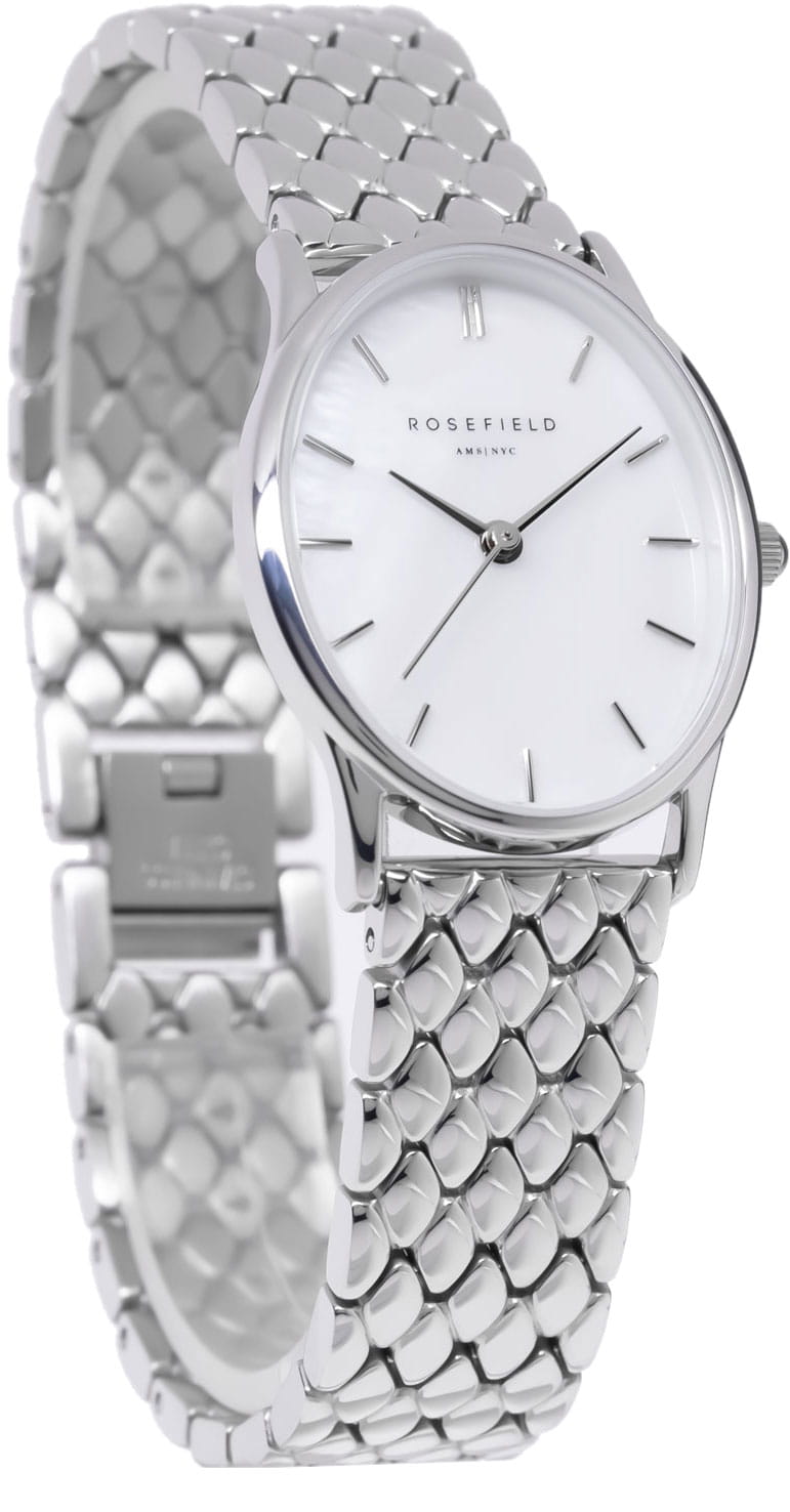 Женские кварцевые часы Rosefield The Oval OWGSS-OV03 отличаются утончённым дизайном и высоким качеством исполнения. Центральные часовая, минутная и секундная стрелки обеспечивают чёткое отображение времени. Белый перламутровый циферблат создаёт эффект элегантности, придавая часам особую изысканность.