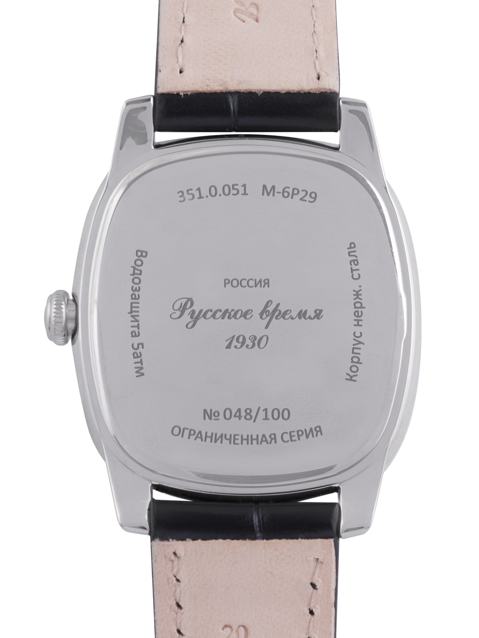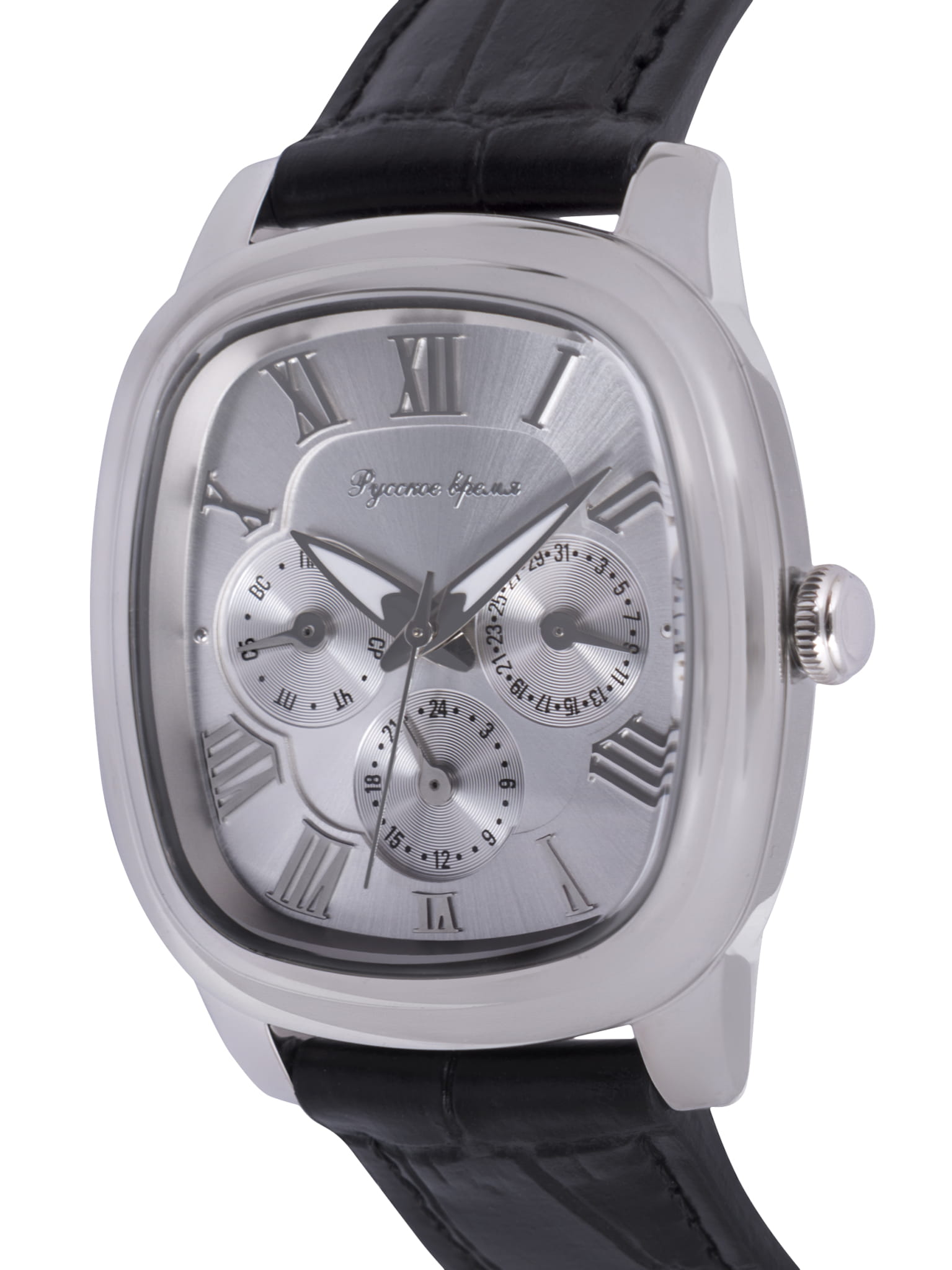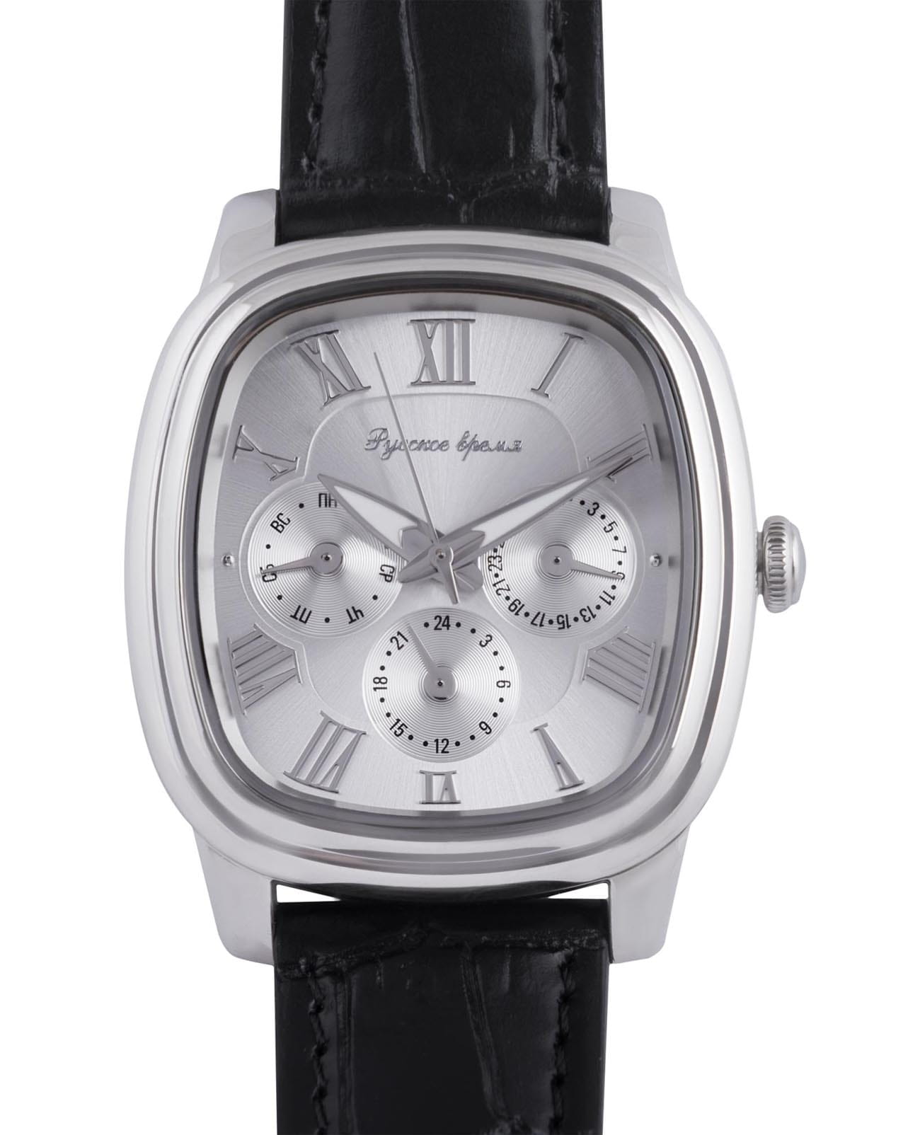 Русское время 3510051 — это мужские часы с классическим дизайном, сочетающие функциональность и стиль. Корпус диаметром 41 мм выполнен из нержавеющей стали, что придаёт часам прочность и долговечность. Циферблат с чёткими метками и стрелками, покрытыми люминесцентным покрытиемЛюминесцентное покрытиеПозволяет считывать показания времени в темноте. Производители наносят на стрелки, часовые индексы, безель или поверхность циферблата светонакопительный состав, дающий холодное свечение., обеспечивает удобство чтения в темноте. Окошко даты расположено на отметке «3 часа» для удобства. Минеральное стекло защищает циферблат от царапин, а водонепроницаемость до 50 метров позволяет носить часы в повседневной жизни, не беспокоясь о сохранности механизма. Часы оснащены кварцевым механизмом, что гарантирует точность хода. Ремешок выполнен из натуральной кожи, что придаёт часам изысканный вид и комфорт при носке.