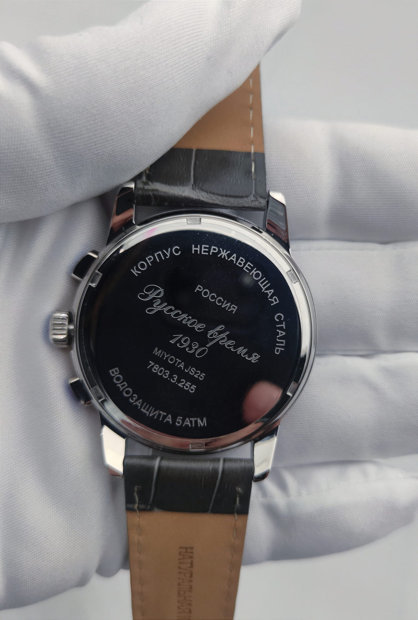 Российские часы Русское время c хронографомХронографФункция позволяет измерять отрезки времени с особой точностью: часы, минуты, секунды. Верным признаком хронографа является наличие на циферблате 3 дополнительных окошек-счётчиков. 78033255 оснащены кварцевый механизм, что обеспечивает исключительную надежность и точность хода. Корпус часов выполнен из стали, что придает ему долговечность и устойчивость к внешним воздействиям.Минеральное стеклоМинеральное стеклоМинеральное стекло представляет собой искусственно выращенный минерал кварца. Такое стекло отличается особой устойчивостью к повреждениям и царапинам. Уступает по некоторым качествам сапфировому стеклу. устойчиво к мелким механическим повреждениям, что гарантирует долговечность и сохранение первоначального вида. Класс водозащиты часов составляет 50 метров, что позволяет защитить корпус от случайных брызг и капель дождя.Кожаный ремешок на стандартной застежке. Эти часы идеально подойдут для повседневного использования, сочетая в себе стиль, надежность и функциональность.