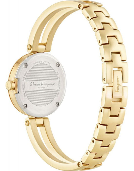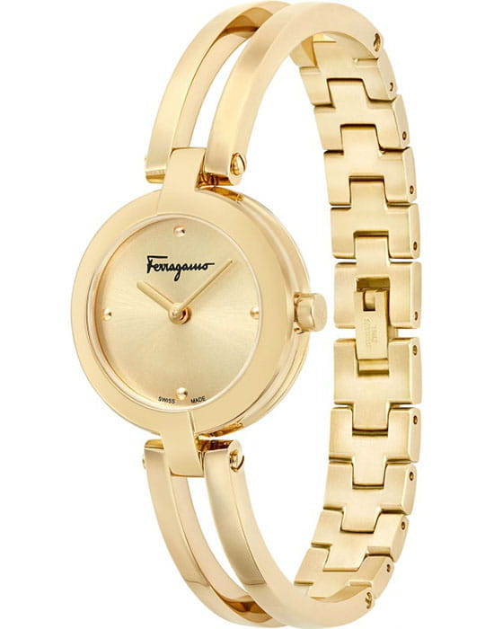 Женские швейцарские часы с сапфировым стеклом Salvatore Ferragamo FAT060017, кварцевый механизм с высокой точностью. Сапфировое стекло устойчивое к появлению царапин, обладающее высокой прозрачностью. Класс водозащиты: 50 метров, позволит защитить корпус от случайных брызг или капель дождя. Корпус часов изготовлен из стали, золотистого цвета.