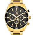 Мужские кварцевые часы Santa Barbara Polo & Racquet Club — это выразительный и функциональный аксессуар. Корпус диаметром 44 мм и высотой 51,5 мм выполнен из стали с IP-покрытиемIP-покрытиеМетод ионного напыления. Демонстрирует повышенную устойчивость к истиранию, окислению и химическим веществам. Под воздействием высокого давления и температуры около 1500°C молекулы металла надёжно соединяются с частицами корпуса часов.. БезельБезельВнешний ободок, закрепляющий стекло. В спортивных часах так называется поворотное кольцо с делениями на циферблате, выполняет роль таймера – замеряет отрезки времени на шкале. Неподвижный безель – элемент декора. Однонаправленно вращающийся безель на дайверских часах позволяет фиксировать моменты погружения и выныривания на поверхность. с минутной шкалой придаёт изделию спортивный характер. Циферблат чёрного цвета оформлен по технологии Sunray («солнечные лучи»), дополнен накладными метками в виде штрихов и фирменным логотипом. Окошко даты расположено между 4 и 5 часами. Указатель дня недели и второй часовой пояс вынесены на отдельные субциферблаты, также присутствует индикация 24-часового формата времени. Стрелки и метки с люминесцентным покрытиемЛюминесцентное покрытиеПозволяет считывать показания времени в темноте. Производители наносят на стрелки, часовые индексы, безель или поверхность циферблата светонакопительный состав, дающий холодное свечение., обеспечивающим хорошую читаемость в темноте. Циферблат защищён минеральным стекломМинеральное стеклоМинеральное стекло представляет собой искусственно выращенный минерал кварца. Такое стекло отличается особой устойчивостью к повреждениям и царапинам. Уступает по некоторым качествам сапфировому стеклу.. Часы оснащены стальным браслетом с IP-покрытиемIP-покрытиеМетод ионного напыления. Демонстрирует повышенную устойчивость к истиранию, окислению и химическим веществам. Под воздействием высокого давления и температуры около 1500°C молекулы металла надёжно соединяются с частицами корпуса часов. и раскладной застёжкойРаскладная застёжкаТакой тип застёжки используется только на браслетах из металла. Она никогда не раскрывается полностью, происходит разделение на 2 и более частей. Раскладывающая застёжка снизит вероятность потери часов к минимуму.. Идеальный выбор для тех, кто ценит стиль, точность и надёжность.