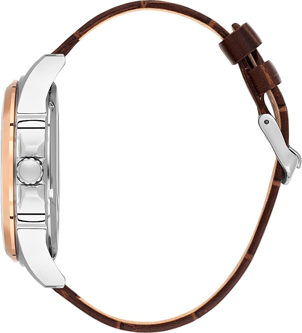 Мужские механические часы с автоподзаводом Santa Barbara Polo & Racquet Club — это стильный и технологичный аксессуар. Корпус диаметром 45 мм выполнен из стали. БезельБезельВнешний ободок, закрепляющий стекло. В спортивных часах так называется поворотное кольцо с делениями на циферблате, выполняет роль таймера – замеряет отрезки времени на шкале. Неподвижный безель – элемент декора. Однонаправленно вращающийся безель на дайверских часах позволяет фиксировать моменты погружения и выныривания на поверхность. с IP-покрытиемIP-покрытиеМетод ионного напыления. Демонстрирует повышенную устойчивость к истиранию, окислению и химическим веществам. Под воздействием высокого давления и температуры около 1500°C молекулы металла надёжно соединяются с частицами корпуса часов.. Циферблат серебристого цвета частично скелетонизирован, что позволяет наблюдать за работой механизма. Двухуровневый циферблат украшен фирменным логотипом и накладными метками в виде штрихов. Часы оснащены индикацией второго часового пояса. Стрелки заострённые, прямоугольные, в стиле Baton, с люминесцентным покрытиемЛюминесцентное покрытиеПозволяет считывать показания времени в темноте. Производители наносят на стрелки, часовые индексы, безель или поверхность циферблата светонакопительный состав, дающий холодное свечение., обеспечивающим хорошую читаемость в темноте. Метки также имеют люминесцентное покрытие. Циферблат защищён минеральным стекломМинеральное стеклоМинеральное стекло представляет собой искусственно выращенный минерал кварца. Такое стекло отличается особой устойчивостью к повреждениям и царапинам. Уступает по некоторым качествам сапфировому стеклу.. Часы оснащены кожаным ремешком с классической пряжкой. Водонепроницаемость 50 м позволяет использовать часы в повседневных условиях. Идеальный выбор для тех, кто ценит современный дизайн, функциональность и качество.
