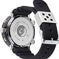 Наручные часы отражают брутальный, спортивный характер. Внешний облик позаимствован у предшественника Seiko H558-5009, выполненный в дайверском стиле, здесь представлена расцветка «Pepsi». Аксессуар работает за счёт японского кварцевого калибра Seiko H851, получающего энергию за счёт источников света – реализация технологии . При полностью заряженном элементе питания модель проработает 6 месяцев без необходимости подзарядки. Противоударный корпусУдаропрочный корпусМеханизм заключён в корпус, выполненный из современных материалов, устойчивых к ударам, механическим повреждениям и падению с высоты: инновационный пластик, карбон, нержавеющая сталь, титан. имеет двойную конструкцию, где нержавеющая сталь 316L дополнительно защищена полимерными протекторами. Циферблат оснащён минеральным закаленным стеклом Hardlex, прочным и устойчивым к царапинам. Сохраняется водостойкость до 200 метров в соответствии со стандартом ISO 6425. Дисплей подсвечивается светодиодомСветодиодная подсветкаСветодиодная или LED-подсветка обеспечивает появление яркого холодного свечения за счёт LED-элементов - маленьких лампочек. Они потребляют минимальное количество энергии, чаще всего можно встретить 1 светодиод, в нижней части циферблата., стрелки и индексы имеют люминесцентную подсветкуЛюминесцентное покрытиеПозволяет считывать показания времени в темноте. Производители наносят на стрелки, часовые индексы, безель или поверхность циферблата светонакопительный состав, дающий холодное свечение.. Функции: будильник, секундомер, вечный календарьВечный календарьКлассическое часовое усложнение, представляющее собой календарь, рассчитанный на несколько лет вперёд (стандартно – до 2099 года). Определяет текущую дату, день недели, месяц.. Диаметр корпуса: 47,8 мм.
