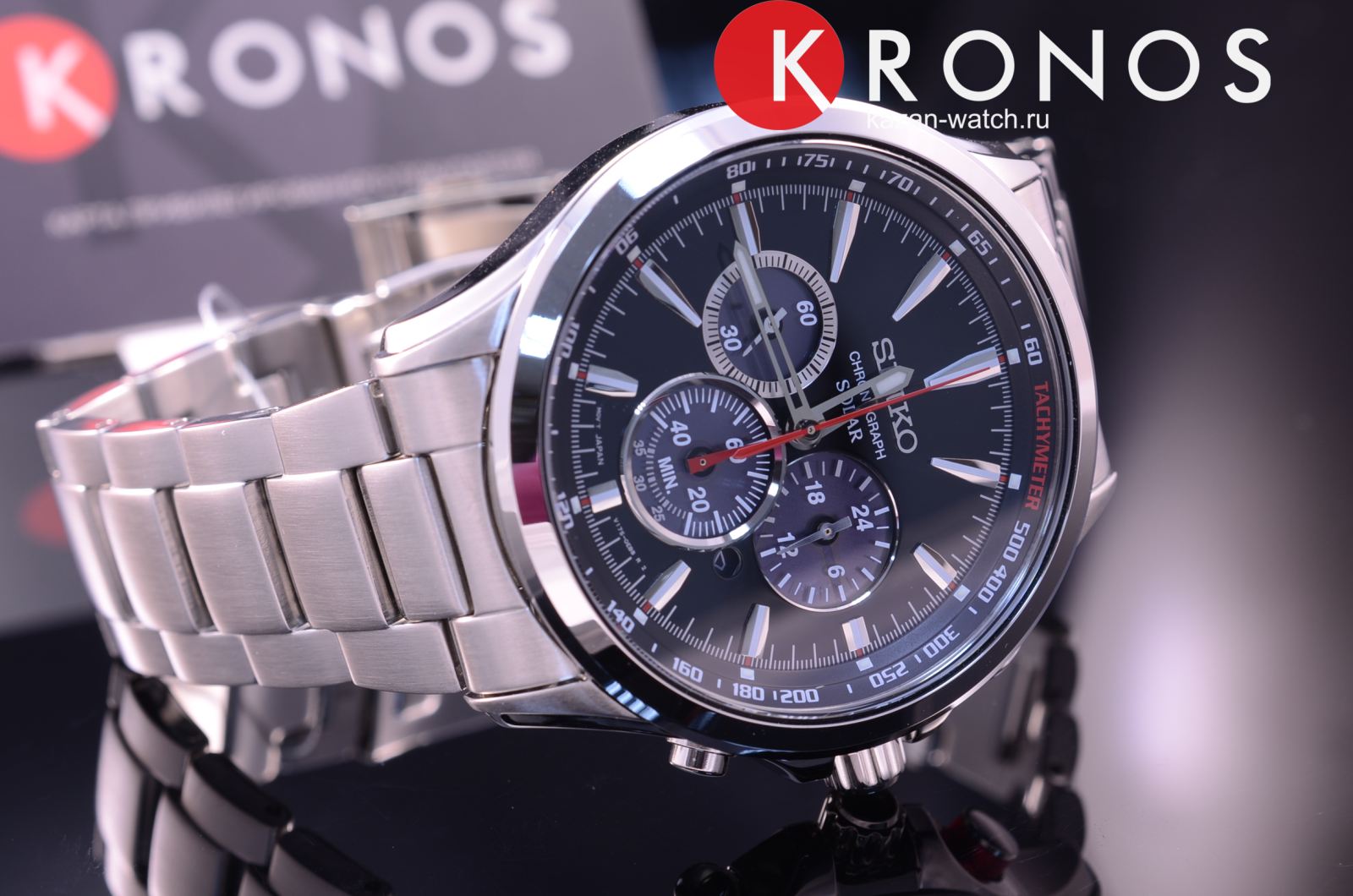 Успешные люди, желающие идти в ногу со временем, выбирают инновационные и надежные часы марки Seiko. Механизм работает от солнечной батареи, калибр V175. Корпус и браслет выполнены из нержавеющей стали с антикоррозийными свойствами. Черный циферблат с контрастными элементами дизайна. Минеральное стекло повышенной прочности Hardlex, устойчиво к царапинам. Водонепрницаемость 100м. Часы оснащены хронографом.