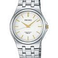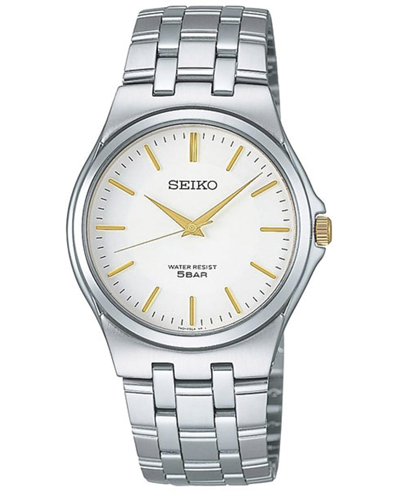 Мужские кварцевые часы Seiko — это надёжный и универсальный аксессуар. Корпус диаметром 34 мм выполнен из нержавеющей стали 316L. Циферблат оформлен индексами и стрелками, включая центральную секундную стрелку. Циферблат защищён прочным закалённым минеральным стеклом Hardlex минеральным стекломМинеральное стеклоМинеральное стекло представляет собой искусственно выращенный минерал кварца. Такое стекло отличается особой устойчивостью к повреждениям и царапинам. Уступает по некоторым качествам сапфировому стеклу.. Механизм — калибр 7N01 с высокой точностью хода (±10–15 сек. в месяц). Часы оснащены стальным браслетом на тройной раскладной застёжкеРаскладная застёжкаТакой тип застёжки используется только на браслетах из металла. Она никогда не раскрывается полностью, происходит разделение на 2 и более частей. Раскладывающая застёжка снизит вероятность потери часов к минимуму. с фиксатором. Водонепроницаемость 50 м позволяет использовать часы в повседневных условиях. Идеальный выбор для тех, кто ценит японское качество и классический дизайн.