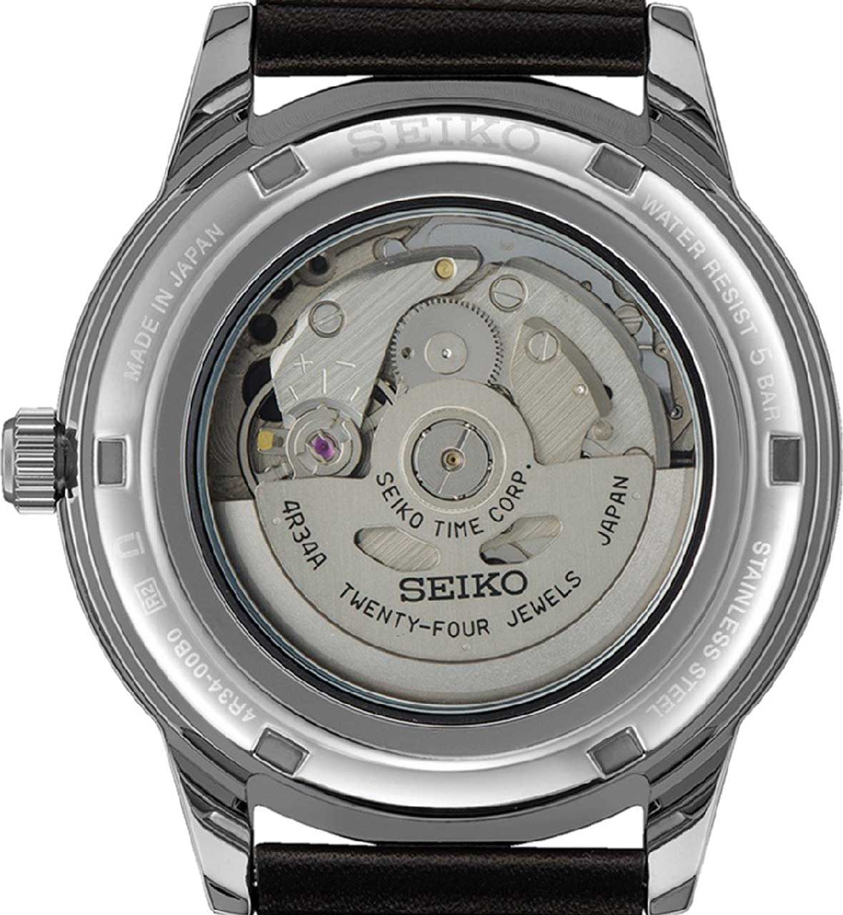 Seiko Presage Style60’s SSK011J1 — гармоничное сочетание винтажной эстетики 60-х годов и современных механических технологий, воплощённое в изысканной и универсальной форме. Корпус диаметром 40.8 мм выполнен из нержавеющей стали с сатинированной и полированной отделкой. Циферблат защищён изогнутым стеклом HardlexМинеральное стеклоМинеральное стекло представляет собой искусственно выращенный минерал кварца. Такое стекло отличается особой устойчивостью к повреждениям и царапинам. Уступает по некоторым качествам сапфировому стеклу., устойчивым к повседневным повреждениям. Циферблат оформлен в минималистичном стиле: накладные серебристые индексы и стрелки с люминесцентным покрытиемЛюминесцентное покрытиеПозволяет считывать показания времени в темноте. Производители наносят на стрелки, часовые индексы, безель или поверхность циферблата светонакопительный состав, дающий холодное свечение. обеспечивают хорошую читаемость. Окно даты расположено на позиции «3 часа». Внутри установлен автоматический механизм Seiko 4R34 с возможностью ручного подзавода. Механизм на 24 камнях работает с частотой 21 600 полуколебаний в час и обеспечивает запас хода около 41 часа. Модель оснащена ремешком на стандартной застежке, обеспечивающей удобство и надёжность при повседневной носке. Водонепроницаемость 50 метров делает SSK011J1 отличным выбором для повседневного стиля и формальных образов. Presage Style60’s — это уважение к традициям и современный подход к классике японского часового искусства.