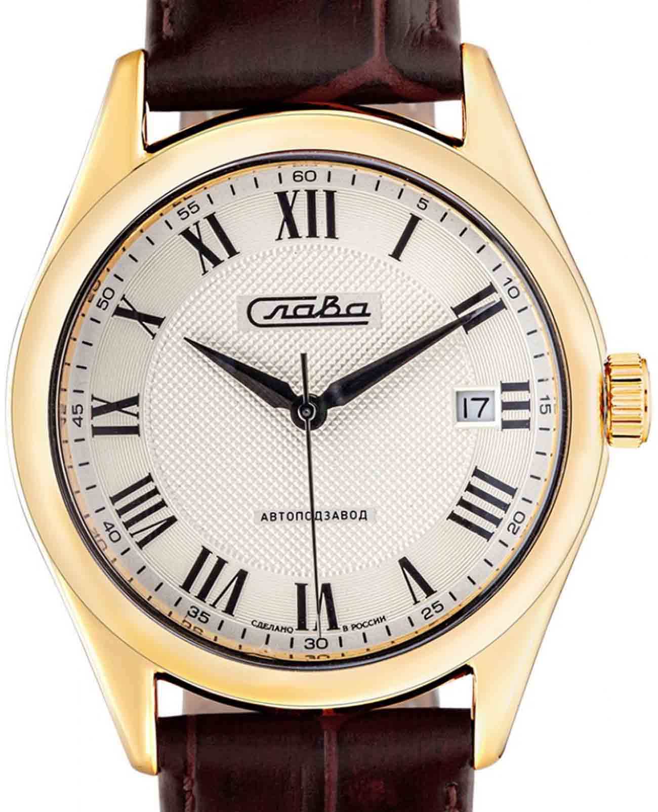 Российские механические наручные часы Слава Сенат 1499296/300-8215, которые станут идеальным аксессуаром для повседневного ношения. Эти часы сочетают в себе элегантность и практичность, предлагая безупречный стиль и надежность. Оснащенные механизмом Miyota 8215 с автоподзаводом, они обеспечивают точность и долговечность. Стальной корпус с IP-покрытиемIP-покрытиеМетод ионного напыления. Демонстрирует повышенную устойчивость к истиранию, окислению и химическим веществам. Под воздействием высокого давления и температуры около 1500°C молекулы металла надёжно соединяются с частицами корпуса часов. и сапфировым стекломСапфировое стеклоПрочный и надёжный материал из кристалла сапфира синтетического происхождения, характеризующийся особой твёрдостью и устойчивостью к царапинам и повреждениям. защищает белый циферблат с римскими цифрами. Часы также имеют календарь с окошком даты на 3 часах и водозащиту до 50WR, что делает их надежными в различных условиях. Текстурированный кожаный коричневый ремешок с классической застежкой завершает этот изысканный образ.