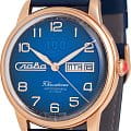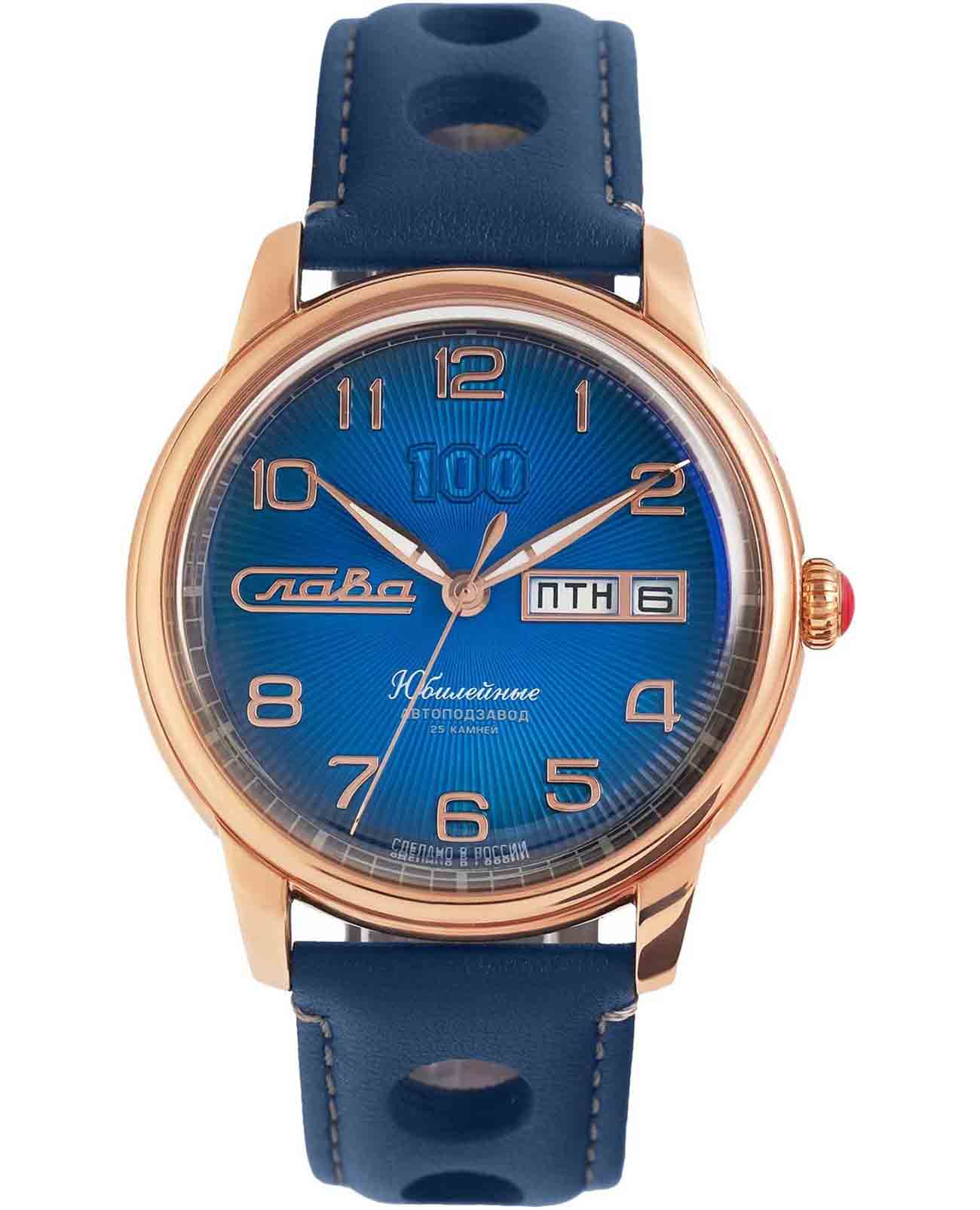 Часы Слава Юбилейные 2603673/300-2427 представляют собой воплощение российского часового искусства, сочетая в себе традиции и современные технологии. Эти механические часы с автоподзаводом оснащены калибром «Слава 2427», который обеспечивает надежную и точную работу. Корпус из высококачественной стали с IP-покрытиемIP-покрытиеМетод ионного напыления. Демонстрирует повышенную устойчивость к истиранию, окислению и химическим веществам. Под воздействием высокого давления и температуры около 1500°C молекулы металла надёжно соединяются с частицами корпуса часов. диаметром 44 мм и толщиной 14,5 мм придает часам солидность и долговечность. Циферблат выполнен в благородном синем цвете и оформлен арабскими цифрами, обеспечивая удобство чтения времени. Прочное выпуклое сапфировое стеклоСапфировое стеклоПрочный и надёжный материал из кристалла сапфира синтетического происхождения, характеризующийся особой твёрдостью и устойчивостью к царапинам и повреждениям. защищает циферблат от царапин и повреждений. Особенностью модели является наличие календаря, отображающего число и день недели в положении 3 часа. Стрелки с люминесцентным покрытиемЛюминесцентное покрытиеПозволяет считывать показания времени в темноте. Производители наносят на стрелки, часовые индексы, безель или поверхность циферблата светонакопительный состав, дающий холодное свечение., что облегчает чтение времени даже в условиях слабого освещения. Часы обладают водозащитой уровня 100WR, что делает их подходящими для повседневного ношения и активного образа жизни. Кожаный ремешок с классической застежкой добавляет модели изысканности и комфорта в носке. Эта модель представлена в лимитированной серии из 300 экземпляров, что делает её не только надежным функциональным аксессуаром, но и ценным предметом для коллекционеров. Прозрачная задняя крышка позволяет наблюдать за работой механизма, который включает в себя 25 камней и имеет частоту 18000 полуколебаний в час. Запас хода составляет до 40 часов, а противоударное устройство оси баланса обеспечивает дополнительную надежность.