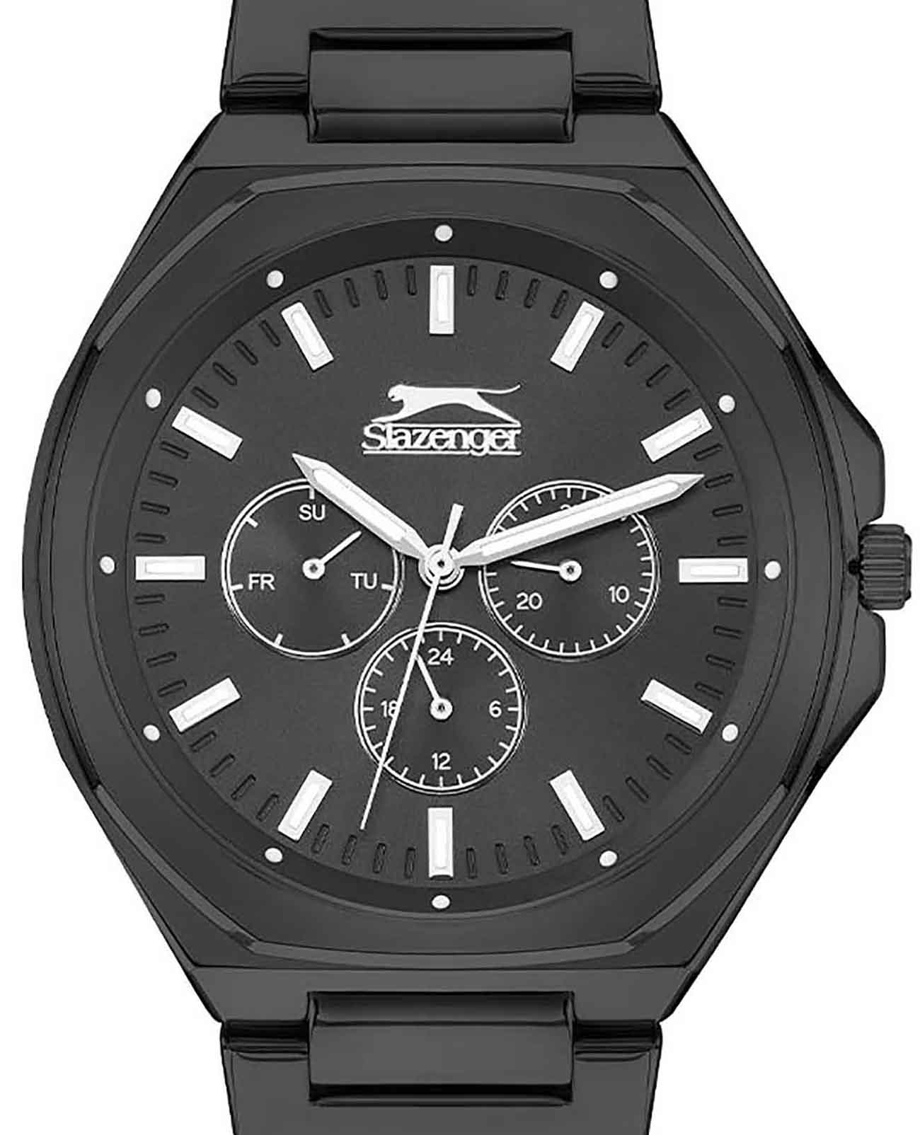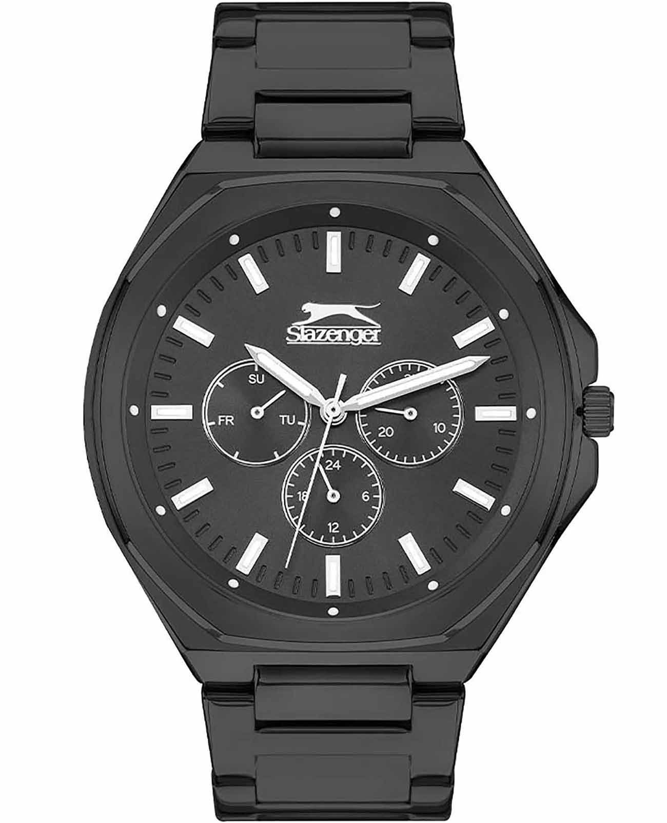 Часы Slazenger SL.09.2039.2.02 представляют собой стильное и функциональное дополнение к вашему образу. Их черный циферблат и корпус с безелемБезельВнешний ободок, закрепляющий стекло. В спортивных часах так называется поворотное кольцо с делениями на циферблате, выполняет роль таймера – замеряет отрезки времени на шкале. Неподвижный безель – элемент декора. Однонаправленно вращающийся безель на дайверских часах позволяет фиксировать моменты погружения и выныривания на поверхность. из суперметалла с IP-покрытиемIP-покрытиеМетод ионного напыления. Демонстрирует повышенную устойчивость к истиранию, окислению и химическим веществам. Под воздействием высокого давления и температуры около 1500°C молекулы металла надёжно соединяются с частицами корпуса часов. создают элегантный и современный вид, который подчеркнет вашу индивидуальность. Эти мужские часы оснащены кварцевым механизмом, обеспечивающим точность хода. Минеральное стеклоМинеральное стеклоМинеральное стекло представляет собой искусственно выращенный минерал кварца. Такое стекло отличается особой устойчивостью к повреждениям и царапинам. Уступает по некоторым качествам сапфировому стеклу. защищает циферблат от царапин, а люминесцентное покрытиеЛюминесцентное покрытиеПозволяет считывать показания времени в темноте. Производители наносят на стрелки, часовые индексы, безель или поверхность циферблата светонакопительный состав, дающий холодное свечение. на стрелках и метках позволяют легко считывать время даже в темноте. Функциональность часов дополнена 24-часовым указателем времени, календарем даты и дня недели. Черный браслет из суперметалла с IP-покрытиемIP-покрытиеМетод ионного напыления. Демонстрирует повышенную устойчивость к истиранию, окислению и химическим веществам. Под воздействием высокого давления и температуры около 1500°C молекулы металла надёжно соединяются с частицами корпуса часов. и с раскладной застёжкойРаскладная застёжкаТакой тип застёжки используется только на браслетах из металла. Она никогда не раскрывается полностью, происходит разделение на 2 и более частей. Раскладывающая застёжка снизит вероятность потери часов к минимуму. гармонично дополняет общий дизайн. Размер корпуса составляет 46 мм в диаметре и 9 мм в толщину, что делает их удобными для повседневного ношения. А водозащита уровня 5 ATM делает их надежными спутниками даже в условиях повышенной влажности.