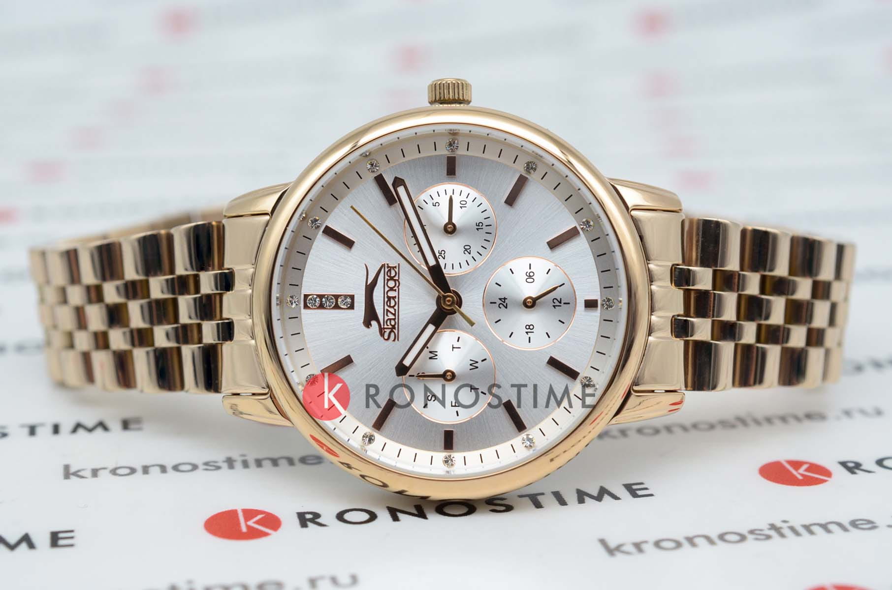 Часы Slazenger SL.09.2050.4.02 — это элегантное сочетание стиля и функциональности, созданное специально для женщин. Их изысканный серебристый циферблат и корпус с безелемБезельВнешний ободок, закрепляющий стекло. В спортивных часах так называется поворотное кольцо с делениями на циферблате, выполняет роль таймера – замеряет отрезки времени на шкале. Неподвижный безель – элемент декора. Однонаправленно вращающийся безель на дайверских часах позволяет фиксировать моменты погружения и выныривания на поверхность. из суперметалла с IP-покрытиемIP-покрытиеМетод ионного напыления. Демонстрирует повышенную устойчивость к истиранию, окислению и химическим веществам. Под воздействием высокого давления и температуры около 1500°C молекулы металла надёжно соединяются с частицами корпуса часов. придают часам современный и утонченный вид. Внутри скрыт надежный кварцевый механизм, который гарантирует точность и долговечность. Минеральное стеклоМинеральное стеклоМинеральное стекло представляет собой искусственно выращенный минерал кварца. Такое стекло отличается особой устойчивостью к повреждениям и царапинам. Уступает по некоторым качествам сапфировому стеклу. защищает часы от царапин, а украшение из фианитов добавляет изысканный акцент. Люминесцентное покрытиеЛюминесцентное покрытиеПозволяет считывать показания времени в темноте. Производители наносят на стрелки, часовые индексы, безель или поверхность циферблата светонакопительный состав, дающий холодное свечение. на стрелках позволяют легко считывать время даже в темноте. Функциональность часов дополнена 24-часовым указателем времени, календарем даты и дня недели. Браслет из суперметалла с IP-покрытиемIP-покрытиеМетод ионного напыления. Демонстрирует повышенную устойчивость к истиранию, окислению и химическим веществам. Под воздействием высокого давления и температуры около 1500°C молекулы металла надёжно соединяются с частицами корпуса часов. и раскладной застёжкойРаскладная застёжкаТакой тип застёжки используется только на браслетах из металла. Она никогда не раскрывается полностью, происходит разделение на 2 и более частей. Раскладывающая застёжка снизит вероятность потери часов к минимуму. подчеркивает женственность дизайна и обеспечивает комфорт в носке. Диаметр корпуса составляет 35 мм, а толщина — 9 мм, что делает их идеальным аксессуаром для любой стильной женщины. Водозащита уровня 3 ATM позволяет не беспокоиться о случайных брызгах.