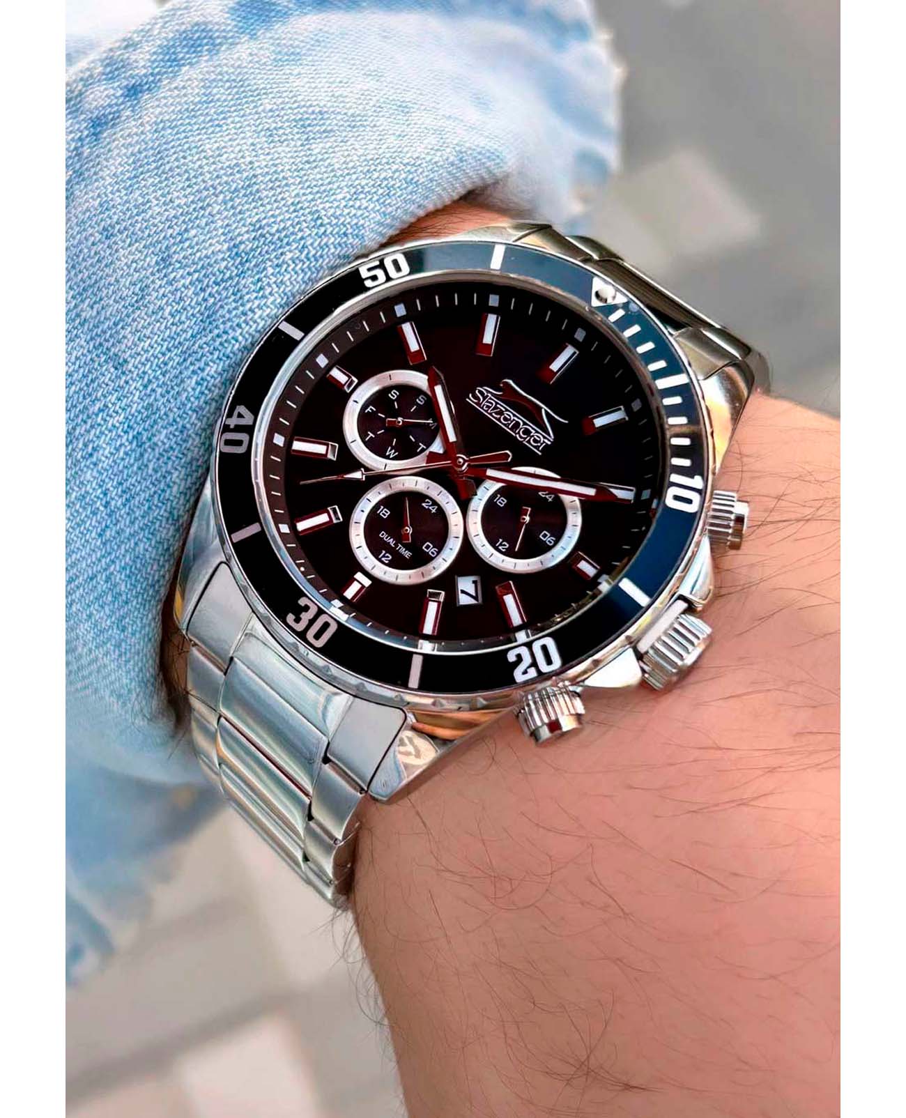 Мужские наручные часы Slazenger SL.09.2091.2.01 сочетают в себе классический дизайн и надежность современных технологий. Модель обладает круглым корпусом диаметром 44 мм, изготовленным из суперметалла, что обеспечивает высокую устойчивость к внешним воздействиям. Браслет выполнен из стали с раскладной застежкойРаскладной замокДанный вариант застежки используется только на часах с металлическим браслетом. Отличительная особенность такого крепления в том, что длина браслета становится универсальной и вы можете самостоятельно отрегулировать нужный вам размер – застежка просто двигается по браслету часов., гарантирующей комфортное ношение и безопасность. Циферблат черного цвета декорирован стрелками с люминесцентным покрытиемЛюминесцентное покрытиеПозволяет считывать показания времени в темноте. Производители наносят на стрелки, часовые индексы, безель или поверхность циферблата светонакопительный состав, дающий холодное свечение., которые обеспечивают читаемость времени даже при недостаточной освещенности. Для защиты используется минеральное стеклоМинеральное стеклоМинеральное стекло представляет собой искусственно выращенный минерал кварца. Такое стекло отличается особой устойчивостью к повреждениям и царапинам. Уступает по некоторым качествам сапфировому стеклу., обеспечивающее прочную защиту от царапин. Часы работают на кварцевом механизме, что гарантирует точное время без необходимости подзаводки. Модель также оснащена дополнительными функциями, делая ее практичной для повседневного использования. Водонепроницаемость часов достигает 5 атмосфер (WR50), что позволяет использовать их во время плавания, однако они не предназначены для дайвинга или других водных видов спорта. Вес модели составляет 143 грамма, а производитель предоставляет гарантию сроком 12 месяцев. SL.09.2091.2.01 — это стильный аксессуар, который станет отличным дополнением как формального, так и casual образа мужчины.