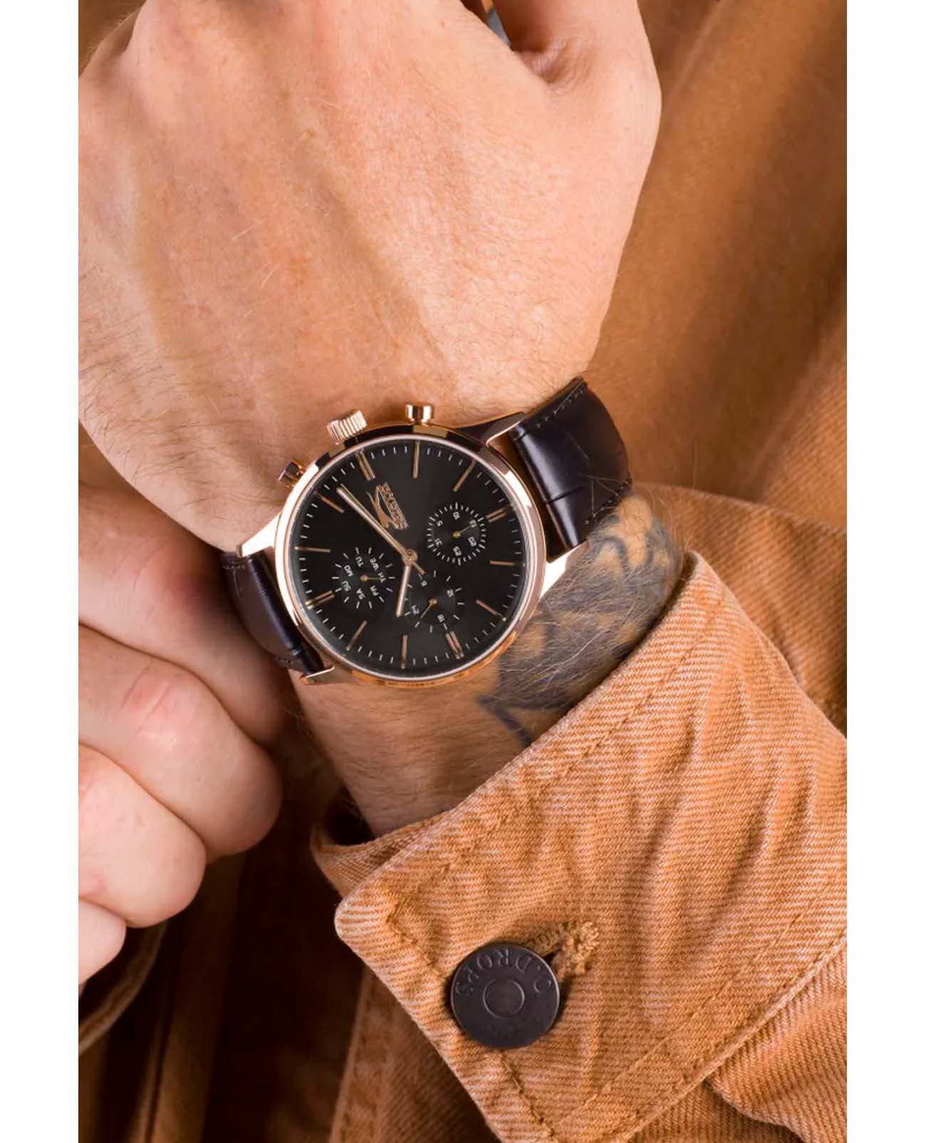 Мужские наручные часы Slazenger SL.09.2124.2.04 сочетают в себе классический дизайн и надежность современных технологий. Модель обладает круглым корпусом диаметром 42 мм, изготовленным из нержавеющей стали с IP-покрытиемIP-покрытиеМетод ионного напыления. Демонстрирует повышенную устойчивость к истиранию, окислению и химическим веществам. Под воздействием высокого давления и температуры около 1500°C молекулы металла надёжно соединяются с частицами корпуса часов., что обеспечивает высокую устойчивость к внешним воздействиям. Браслет выполнен из натуральной кожи черного цвета, гарантирующий комфортное ношение и стильный внешний вид. Циферблат черного цвета декорирован стрелками, которые обеспечивают читаемость времени даже в условиях недостаточной освещенности. Для защиты используется минеральное стеклоМинеральное стеклоМинеральное стекло представляет собой искусственно выращенный минерал кварца. Такое стекло отличается особой устойчивостью к повреждениям и царапинам. Уступает по некоторым качествам сапфировому стеклу., обеспечивающее прочную защиту от царапин. Часы работают на кварцевом механизме, что гарантирует точное время без необходимости подзаводки. Модель также оснащена функцией отображения даты, делая ее практичной для повседневного использования. Водонепроницаемость часов достигает 5 атмосфер (WR50), что позволяет использовать их во время плавания, однако не рекомендуется для дайвинга или других водных видов спорта. Толщина часов составляет 14 мм.