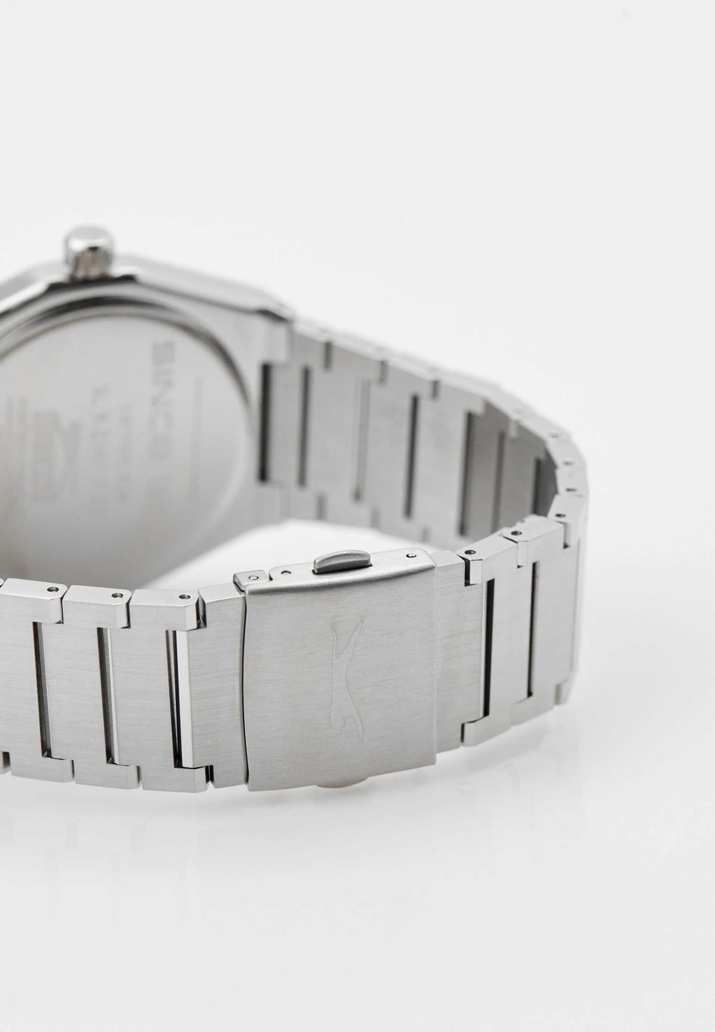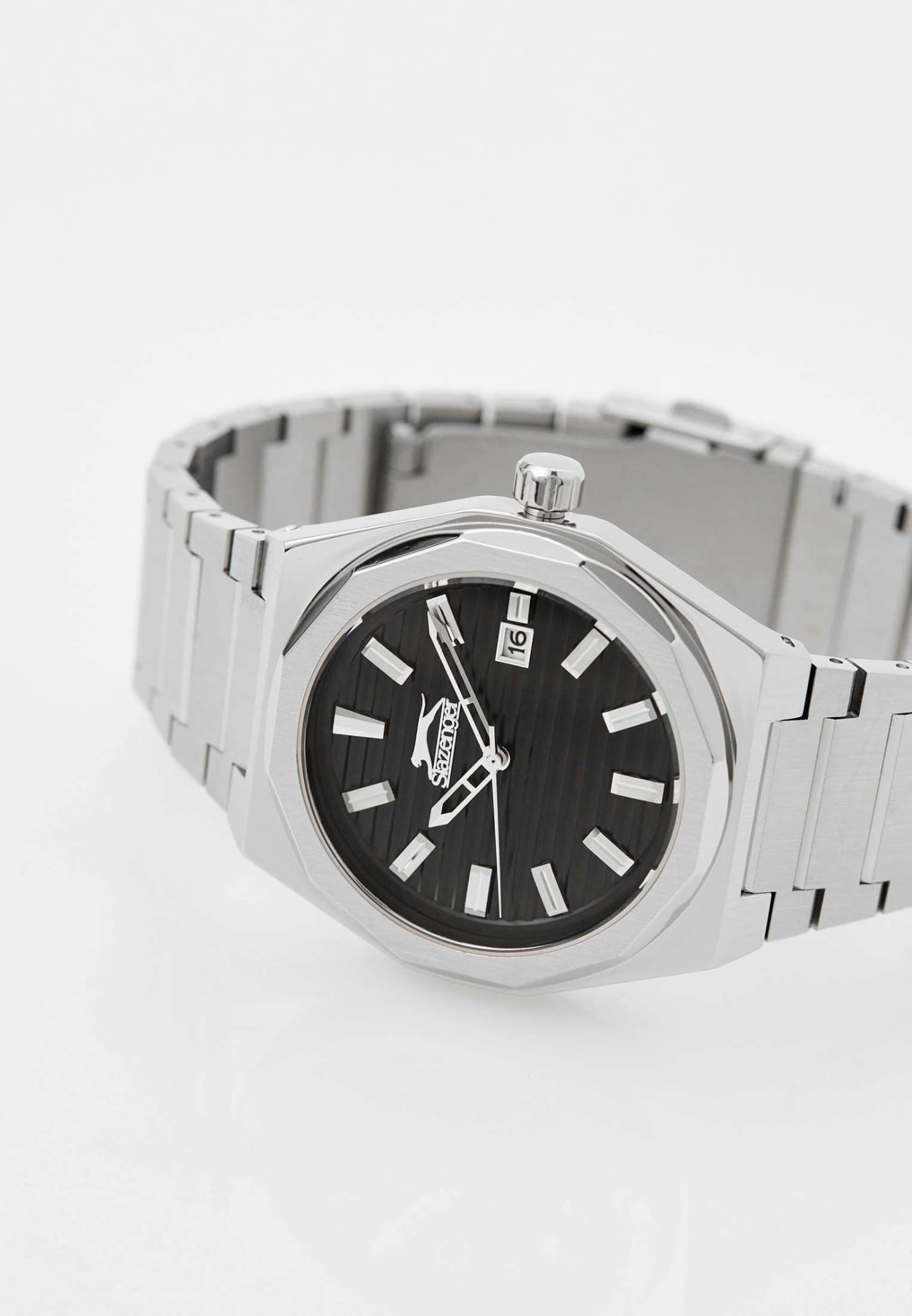 Часы Slazenger SL.09.2143.1.01 воплощают в себе элегантность и практичность, идеально подходящие для современных мужчин. Их серый циферблат защищен минеральным стекломМинеральное стеклоМинеральное стекло представляет собой искусственно выращенный минерал кварца. Такое стекло отличается особой устойчивостью к повреждениям и царапинам. Уступает по некоторым качествам сапфировому стеклу. и заключен в серебристый корпус диаметром 41,5 мм, который изготовлен из прочного суперметалла. Окошко даты расположено в положении 3 часов. Надежный кварцевый механизм обеспечивает точность, а водозащита 5 ATM делает их устойчивыми к воздействию воды. Браслет из суперметалла имеет раскладную застёжкуРаскладная застёжкаТакой тип застёжки используется только на браслетах из металла. Она никогда не раскрывается полностью, происходит разделение на 2 и более частей. Раскладывающая застёжка снизит вероятность потери часов к минимуму., что подчеркивает современный стиль и позволяет легко снимать часы. Ширина браслета 22-26 мм.