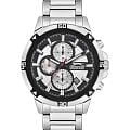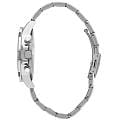 Часы Slazenger SL.09.2249.2.01 — это стильная и практичная модель, выполненная в элегантном серебристом цвете. Корпус и браслет изготовлены из металла, что обеспечивает прочность и долговечность. На безельБезельВнешний ободок, закрепляющий стекло. В спортивных часах так называется поворотное кольцо с делениями на циферблате, выполняет роль таймера – замеряет отрезки времени на шкале. Неподвижный безель – элемент декора. Однонаправленно вращающийся безель на дайверских часах позволяет фиксировать моменты погружения и выныривания на поверхность. частично нанесено черное IP-покрытиеIP-покрытиеМетод ионного напыления. Демонстрирует повышенную устойчивость к истиранию, окислению и химическим веществам. Под воздействием высокого давления и температуры около 1500°C молекулы металла надёжно соединяются с частицами корпуса часов.. Минеральное стеклоМинеральное стеклоМинеральное стекло представляет собой искусственно выращенный минерал кварца. Такое стекло отличается особой устойчивостью к повреждениям и царапинам. Уступает по некоторым качествам сапфировому стеклу. надежно защищает черно-серебристый циферблат от царапин и повреждений. Диаметр корпуса составляет 45 мм, а толщина — 12 мм, благодаря чему часы смотрятся солидно и современно. Модель оснащена кварцевым механизмом, отличающимся точностью и надежностью. На циферблате представлены дополнительные малые циферблаты для отображения второго часового поясаВторой часовой поясФункция, позволяющая отображать время двух часовых поясов одновременно., дня недели и времени в 24-часовом формате, а также имеется отдельное окошко даты. Для удобства использования в темное время суток предусмотрено люминесцентное покрытиеЛюминесцентное покрытиеПозволяет считывать показания времени в темноте. Производители наносят на стрелки, часовые индексы, безель или поверхность циферблата светонакопительный состав, дающий холодное свечение. стрелок и меток. Удобный металлический браслет шириной 22 мм снабжен раскладной застёжкойРаскладная застёжкаТакой тип застёжки используется только на браслетах из металла. Она никогда не раскрывается полностью, происходит разделение на 2 и более частей. Раскладывающая застёжка снизит вероятность потери часов к минимуму., обеспечивающей надежную фиксацию на запястье. Заводная головка оснащена защитой. Водозащита уровня WR 50 позволяет не снимать часы при мытье рук или попадании под дождь. Вес модели составляет 151 грамм.