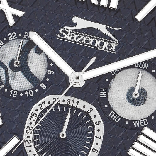 Мужские кварцевые часы Slazenger SL.09.2320.2.02 — это выразительный и функциональный аксессуар, сочетающий стиль, прочность и насыщенную комплектацию. Корпус и браслет выполнены из суперметалла, а циферблат частично скелетонизирован и оформлен в синих тонах, что позволяет наблюдать за работой механизма. Циферблат защищён минеральным стекломМинеральное стеклоМинеральное стекло представляет собой искусственно выращенный минерал кварца. Такое стекло отличается особой устойчивостью к повреждениям и царапинам. Уступает по некоторым качествам сапфировому стеклу. и дополнен вынесенными малыми циферблатами для индикации дня недели, даты и времени в 24-часовом формате. Стрелки и метки оснащены люминесцентным покрытиемЛюминесцентное покрытиеПозволяет считывать показания времени в темноте. Производители наносят на стрелки, часовые индексы, безель или поверхность циферблата светонакопительный состав, дающий холодное свечение., обеспечивающим хорошую читаемость в темноте. Завинчивающаяся задняя крышка повышает надёжность конструкции. Браслет из суперметалла фиксируется на раскладной застёжкеРаскладная застёжкаТакой тип застёжки используется только на браслетах из металла. Она никогда не раскрывается полностью, происходит разделение на 2 и более частей. Раскладывающая застёжка снизит вероятность потери часов к минимуму., обеспечивая удобство и безопасность ношения. Водонепроницаемость 50 м позволяет использовать часы в повседневных условиях, защищая от случайных брызг и капель дождя. Модель подчёркивает индивидуальность владельца и идеально подходит как для повседневного, так и для делового образа.