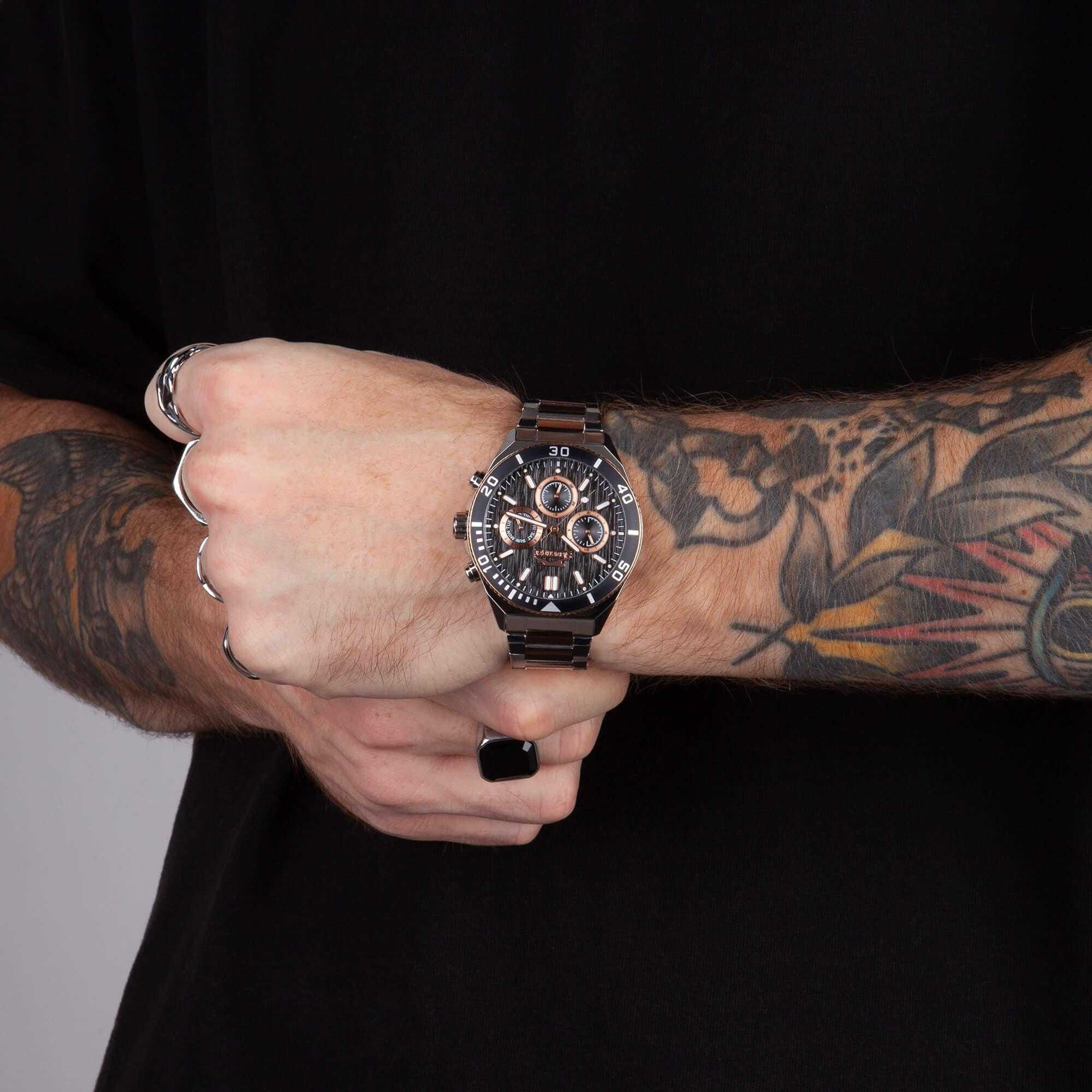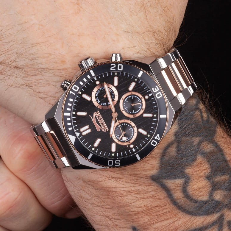 Мужские кварцевые часы Slazenger SL.09.2370.2.04 – идеальное сочетание классического дизайна и современных технологий, созданное для уверенных в себе мужчин. Корпус выполнен из суперметалла серебристого цвета, диаметром 44.5 мм и толщиной 13 мм, подчёркивает надежность модели и делает их идеальным аксессуаром для любой ситуации – будь то деловая встреча или повседневные выходы. Циферблат надёжно защищён минеральным стекломМинеральное стеклоМинеральное стекло представляет собой искусственно выращенный минерал кварца. Такое стекло отличается особой устойчивостью к повреждениям и царапинам. Уступает по некоторым качествам сапфировому стеклу., которое устойчиво к механическим повреждениям и сохраняет кристальную прозрачность. БезельБезельВнешний ободок, закрепляющий стекло. В спортивных часах так называется поворотное кольцо с делениями на циферблате, выполняет роль таймера – замеряет отрезки времени на шкале. Неподвижный безель – элемент декора. Однонаправленно вращающийся безель на дайверских часах позволяет фиксировать моменты погружения и выныривания на поверхность. с IP-покрытиемIP-покрытиеМетод ионного напыления. Демонстрирует повышенную устойчивость к истиранию, окислению и химическим веществам. Под воздействием высокого давления и температуры около 1500°C молекулы металла надёжно соединяются с частицами корпуса часов. черного цвета. Стальной браслет с частичным IP-покрытиемIP-покрытиеМетод ионного напыления. Демонстрирует повышенную устойчивость к истиранию, окислению и химическим веществам. Под воздействием высокого давления и температуры около 1500°C молекулы металла надёжно соединяются с частицами корпуса часов. удобно облегает запястье и фиксируется с помощью раскладной застёжкиРаскладная застёжкаТакой тип застёжки используется только на браслетах из металла. Она никогда не раскрывается полностью, происходит разделение на 2 и более частей. Раскладывающая застёжка снизит вероятность потери часов к минимуму., обеспечивая надёжность и комфорт в повседневном ношении. Стрелки и метки покрыты люминесцентным покрытиемЛюминесцентное покрытиеПозволяет считывать показания времени в темноте. Производители наносят на стрелки, часовые индексы, безель или поверхность циферблата светонакопительный состав, дающий холодное свечение., обеспечивающим отличную читаемость в темноте. Эти часы станут не просто аксессуаром, а надежным спутником в любой ситуации, подчеркивая ваш безупречный вкус и деловой стиль. Вынесенный циферблат с 24-х часовым указателем времени. Водозащита 50 метров позволит защитить корпус от случайных брызг или капель дождя.