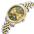 Женские кварцевые часы Slazenger — это выразительный и функциональный аксессуар. Корпус диаметром 33 мм и толщиной 10 мм выполнен из суперметалла. БезельБезельВнешний ободок, закрепляющий стекло. В спортивных часах так называется поворотное кольцо с делениями на циферблате, выполняет роль таймера – замеряет отрезки времени на шкале. Неподвижный безель – элемент декора. Однонаправленно вращающийся безель на дайверских часах позволяет фиксировать моменты погружения и выныривания на поверхность. из суперметалла с IP-покрытиемIP-покрытиеМетод ионного напыления. Демонстрирует повышенную устойчивость к истиранию, окислению и химическим веществам. Под воздействием высокого давления и температуры около 1500°C молекулы металла надёжно соединяются с частицами корпуса часов.. Циферблат зелёного цвета оформлен индексами и стрелками. Циферблат защищён минеральным стекломМинеральное стеклоМинеральное стекло представляет собой искусственно выращенный минерал кварца. Такое стекло отличается особой устойчивостью к повреждениям и царапинам. Уступает по некоторым качествам сапфировому стеклу.. Механизм — кварцевый калибр VX3HE11. Часы оснащены индикацией дня недели, даты и индикатором день/ночь, отображающим солнце или луну в зависимости от времени суток. Часы оснащены браслетом из суперметалла с IP-покрытиемIP-покрытиеМетод ионного напыления. Демонстрирует повышенную устойчивость к истиранию, окислению и химическим веществам. Под воздействием высокого давления и температуры около 1500°C молекулы металла надёжно соединяются с частицами корпуса часов. на на застёжке «бабочка» с кнопкамиЗастёжка "бабочка"Такой вид застёжки дополняется предохранителями, помогающими избежать случайного раскрытия браслета. Обладают изящным исполнением. . Водонепроницаемость 50 м позволяет использовать часы в повседневных условиях. Гарантия — 12 месяцев. Идеальный выбор для тех, кто ценит стиль, функциональность и качество.
