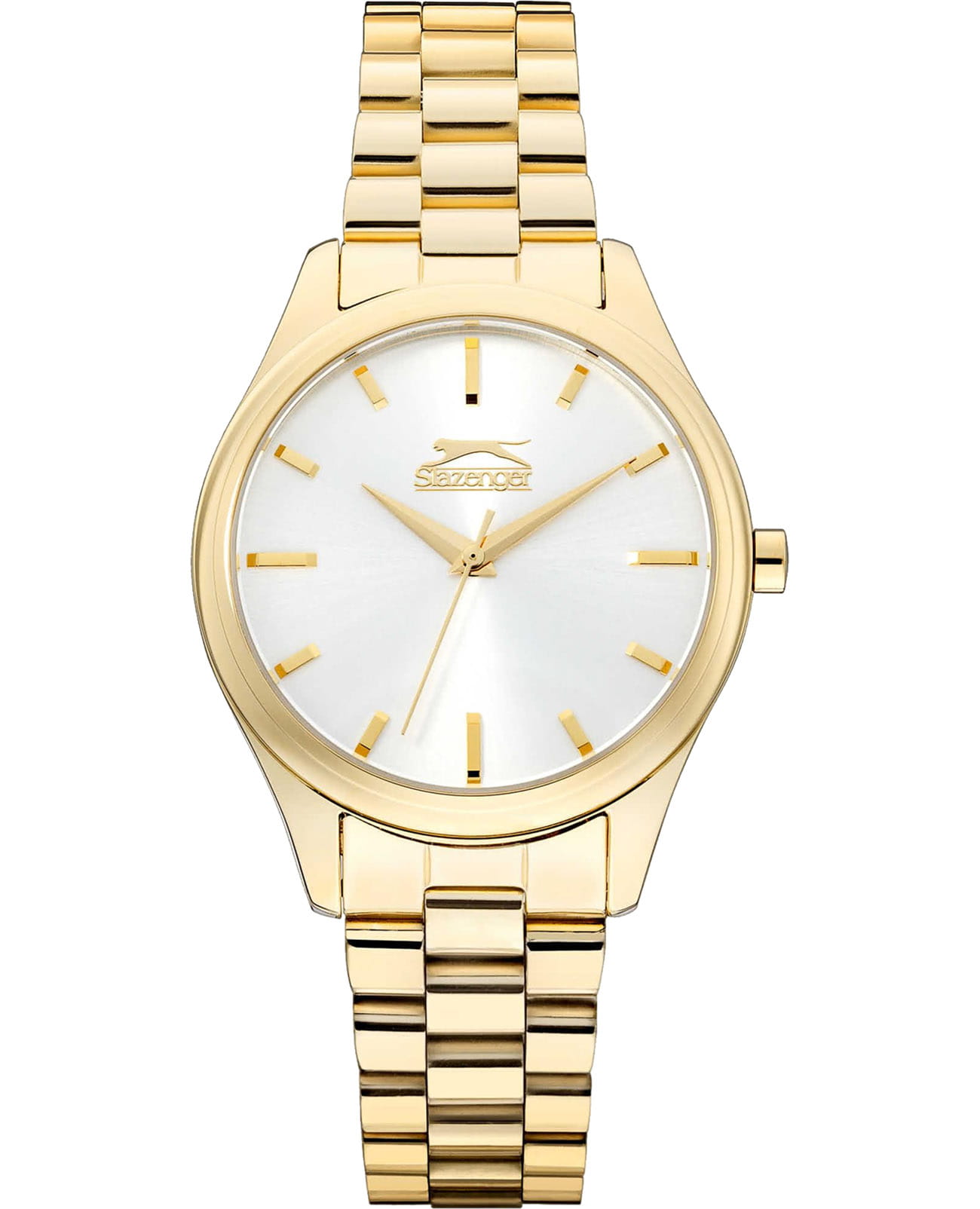 Женские кварцевые часы Slazenger — это элегантный аксессуар. Корпус диаметром 34 мм и толщиной 9 мм выполнен из суперметалла с IP-покрытиемIP-покрытиеМетод ионного напыления. Демонстрирует повышенную устойчивость к истиранию, окислению и химическим веществам. Под воздействием высокого давления и температуры около 1500°C молекулы металла надёжно соединяются с частицами корпуса часов.. Циферблат серебристого цвета оформлен индексами и стрелками. Циферблат защищён минеральным стекломМинеральное стеклоМинеральное стекло представляет собой искусственно выращенный минерал кварца. Такое стекло отличается особой устойчивостью к повреждениям и царапинам. Уступает по некоторым качествам сапфировому стеклу.. Механизм — кварцевый калибр Miyota 2035. Часы оснащены браслетом из суперметалла на раскладной застёжкеРаскладная застёжкаТакой тип застёжки используется только на браслетах из металла. Она никогда не раскрывается полностью, происходит разделение на 2 и более частей. Раскладывающая застёжка снизит вероятность потери часов к минимуму.. Водонепроницаемость 30 м позволяет использовать часы в повседневных условиях. Идеальный выбор для тех, кто ценит стиль и качество.