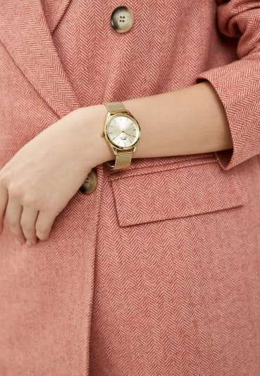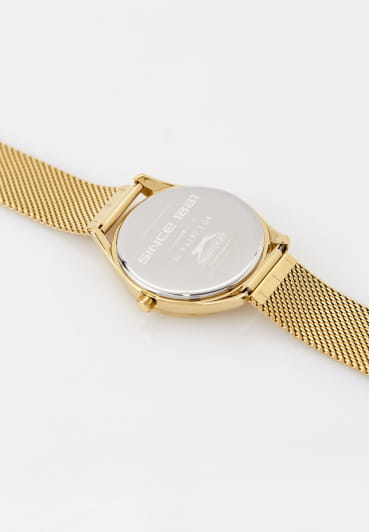 Женские кварцевые часы Slazenger — это элегантный аксессуар с браслетом миланского плетения. Корпус диаметром 35 мм и толщиной 8 мм выполнен из суперметалла с IP-покрытиемIP-покрытиеМетод ионного напыления. Демонстрирует повышенную устойчивость к истиранию, окислению и химическим веществам. Под воздействием высокого давления и температуры около 1500°C молекулы металла надёжно соединяются с частицами корпуса часов.. Циферблат цвета шампань оформлен индексами и стрелками. Циферблат защищён минеральным стекломМинеральное стеклоМинеральное стекло представляет собой искусственно выращенный минерал кварца. Такое стекло отличается особой устойчивостью к повреждениям и царапинам. Уступает по некоторым качествам сапфировому стеклу.. Часы оснащены браслетом из суперметалла на раскладной застёжкеРаскладная застёжкаТакой тип застёжки используется только на браслетах из металла. Она никогда не раскрывается полностью, происходит разделение на 2 и более частей. Раскладывающая застёжка снизит вероятность потери часов к минимуму.. Водонепроницаемость 30 м позволяет использовать часы в повседневных условиях. Идеальный выбор для тех, кто ценит стиль и качество.