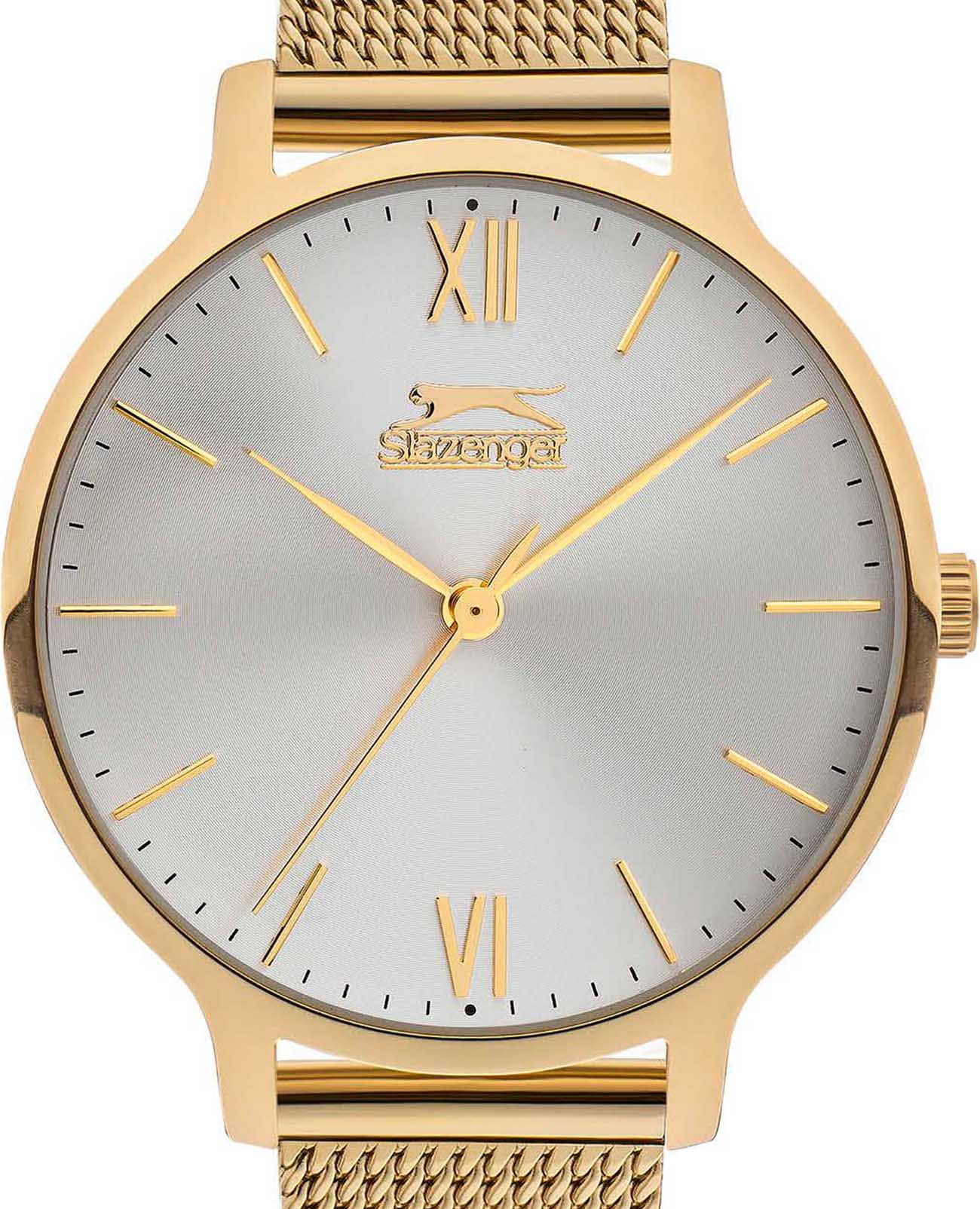 Женские кварцевые часы Slazenger — это элегантный аксессуар. Корпус диаметром 34 мм и толщиной 7 мм выполнен из суперметалла с IP-покрытиемIP-покрытиеМетод ионного напыления. Демонстрирует повышенную устойчивость к истиранию, окислению и химическим веществам. Под воздействием высокого давления и температуры около 1500°C молекулы металла надёжно соединяются с частицами корпуса часов.. Циферблат серебристого цвета оформлен индексами и стрелками. Циферблат защищён минеральным стекломМинеральное стеклоМинеральное стекло представляет собой искусственно выращенный минерал кварца. Такое стекло отличается особой устойчивостью к повреждениям и царапинам. Уступает по некоторым качествам сапфировому стеклу.. Часы оснащены браслетом миланского плетения из суперметалла с IP-покрытиемIP-покрытиеМетод ионного напыления. Демонстрирует повышенную устойчивость к истиранию, окислению и химическим веществам. Под воздействием высокого давления и температуры около 1500°C молекулы металла надёжно соединяются с частицами корпуса часов. на раскладном замкеРаскладная застёжкаТакой тип застёжки используется только на браслетах из металла. Она никогда не раскрывается полностью, происходит разделение на 2 и более частей. Раскладывающая застёжка снизит вероятность потери часов к минимуму.. Водонепроницаемость 30 м позволяет использовать часы в повседневных условиях. Идеальный выбор для тех, кто ценит стиль и качество.