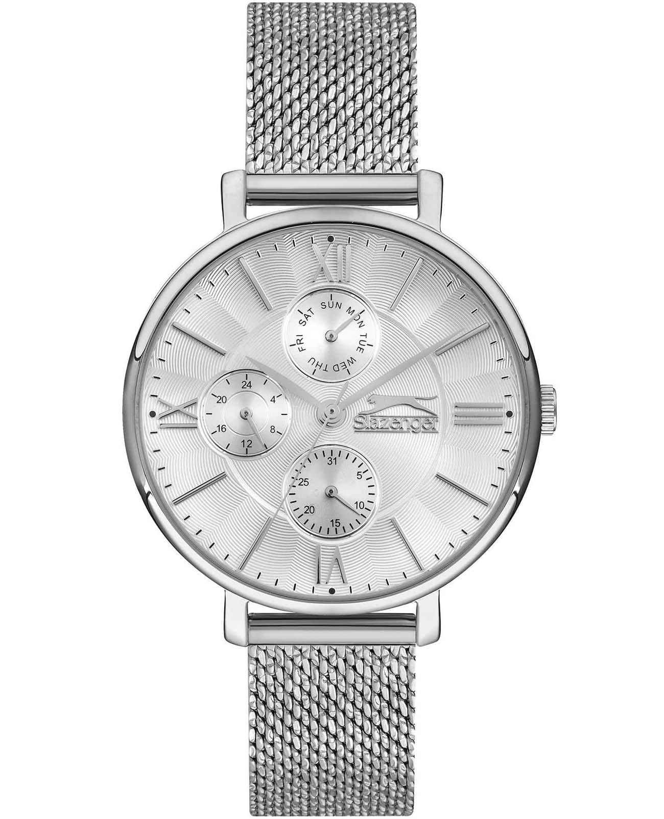 Женские элегантные наручные часы Slazenger SL.09.6543.4.04 сочетают в себе современный стиль и функциональность. Корпус выполнен из суперметалла, придающий модели дополнительную прочность и элегантный внешний вид. Изысканный циферблат защищён минеральным стекломМинеральное стеклоМинеральное стекло представляет собой искусственно выращенный минерал кварца. Такое стекло отличается особой устойчивостью к повреждениям и царапинам. Уступает по некоторым качествам сапфировому стеклу., устойчивым к царапинам и повреждениям. Часы оснащены дополнительными циферблатами, отображающими дату, день недели и 24-часовой формат времени, что добавляет практичности в повседневном использовании. Водонепроницаемость 3 АТМ позволяет использовать часы в повседневных условиях — при мытье рук или под лёгким дождём. Браслет из суперметалла с раскладным замкомРаскладной замокДанный вариант застежки используется только на часах с металлическим браслетом. Отличительная особенность такого крепления в том, что длина браслета становится универсальной и вы можете самостоятельно отрегулировать нужный вам размер – застежка просто двигается по браслету часов. обеспечивает надёжную фиксацию и комфорт при ношении. Эта модель идеально подходит для женщин, ценящих стиль, функциональность и надёжность в одном аксессуаре.
