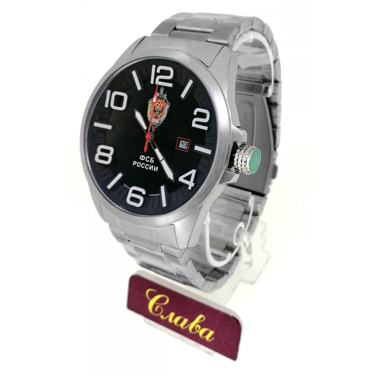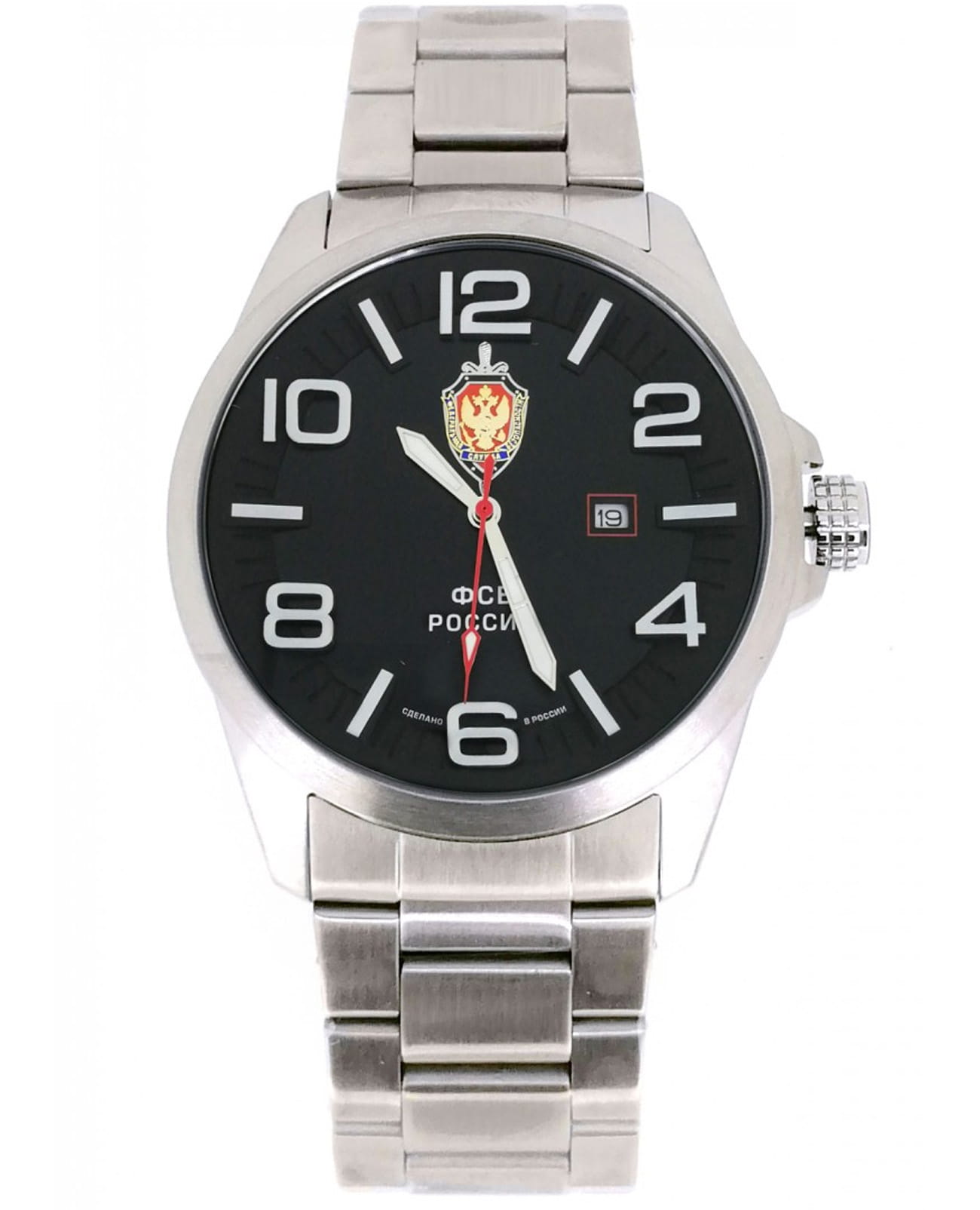 Циферблат украшен символикой и девизом ФСБ, подчёркивая принадлежность к военной тематике. Заводная головка оснащена защитой для предотвращения случайного повреждения.