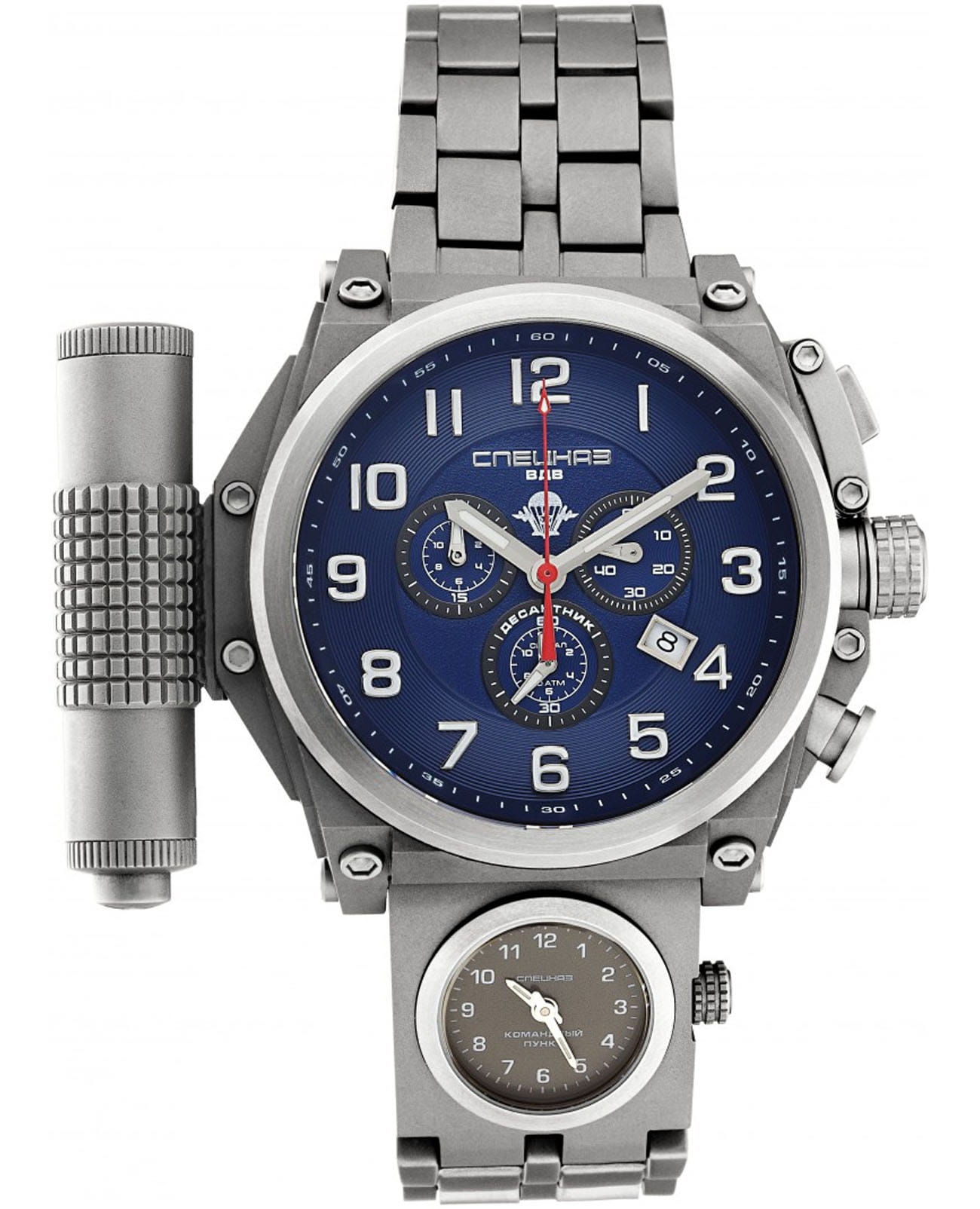 Дополнительной особенностью является съёмный контейнер с функцией LED-фонарика. Эти часы выпущены ограниченной серией и подойдут для тех, кто ценит сочетание надёжности, функциональности и уникального дизайна.