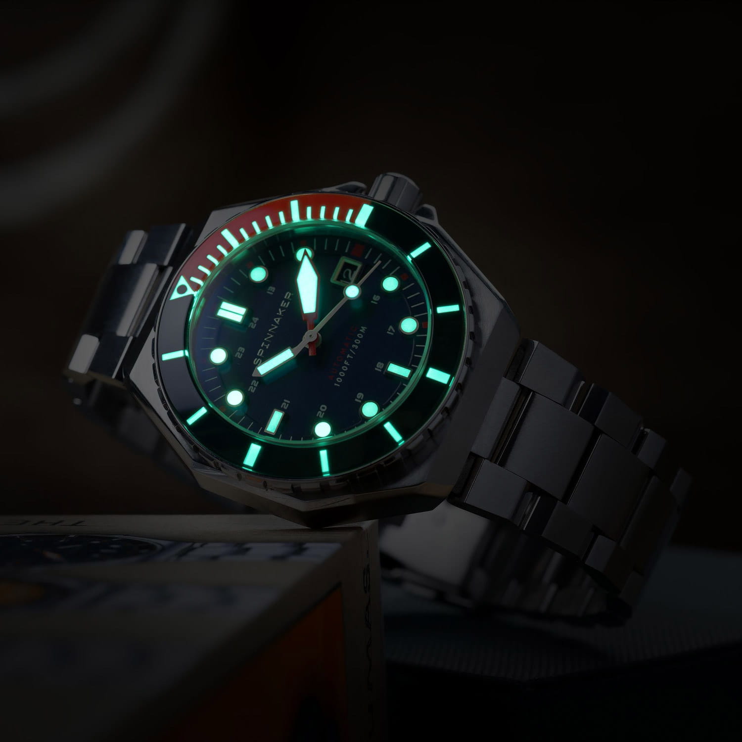 Мужские итальянские часы Spinnaker Dumas SP-5081-JJ, механический механизм (автоматический калибр) с высокой точностью. Циферблат с люминесцентным покрытиемЛюминесцентное покрытиеПозволяет считывать показания времени в темноте. Производители наносят на стрелки, часовые индексы, безель или поверхность циферблата светонакопительный состав, дающий холодное свечение. стрелок и меток, дополнен сапфировым стекломСапфировое стеклоПрочный и надёжный материал из кристалла сапфира синтетического происхождения, характеризующийся особой твёрдостью и устойчивостью к царапинам и повреждениям., устойчивым к появлению царапин и обладающее высокой прозрачностью. Класс водозащиты: 300 метров, позволит плавать, нырять и заниматься другими водными видами спорта. Корпус часов изготовлен из стали.