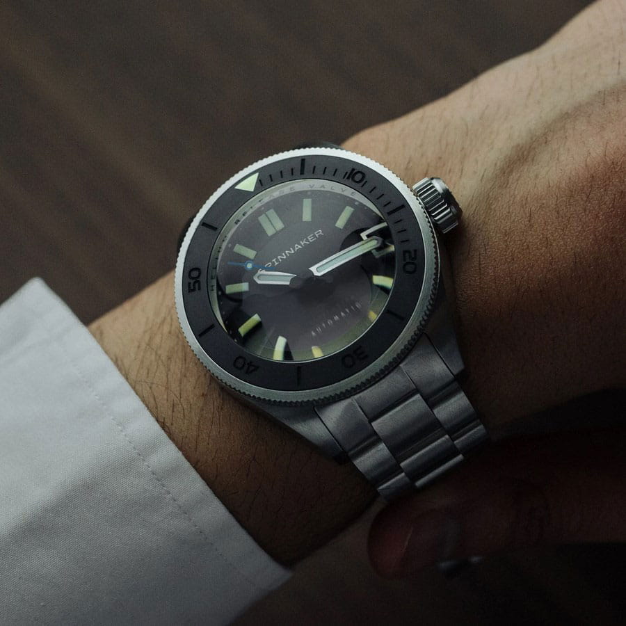 Мужские итальянские часы Spinnaker Spence SP-5098-33, механический механизм (автоматический калибр) с высокой точностью. Циферблат с люминесцентным покрытиемЛюминесцентное покрытиеПозволяет считывать показания времени в темноте. Производители наносят на стрелки, часовые индексы, безель или поверхность циферблата светонакопительный состав, дающий холодное свечение. стрелок и меток, дополнен сапфировым стекломСапфировое стеклоПрочный и надёжный материал из кристалла сапфира синтетического происхождения, характеризующийся особой твёрдостью и устойчивостью к царапинам и повреждениям., устойчивым к появлению царапин и обладающее высокой прозрачностью. Вращающийся безельБезельВнешний ободок, закрепляющий стекло. В спортивных часах так называется поворотное кольцо с делениями на циферблате, выполняет роль таймера – замеряет отрезки времени на шкале. Неподвижный безель – элемент декора. Однонаправленно вращающийся безель на дайверских часах позволяет фиксировать моменты погружения и выныривания на поверхность. с PVD-покрытиемPVDУльтратонкое покрытие наносится в технике вакуумного напыления, сочетает в себе нитрид титана особой прочности со слоем золота или оксида хрома. Несёт в себе декоративную или защитную функцию.. Класс водозащиты: 300 метров, позволит плавать, нырять и заниматься другими водными видами спорта. Корпус часов изготовлен из стали. Браслет с раскладной застёжкойРаскладная застёжкаТакой тип застёжки используется только на браслетах из металла. Она никогда не раскрывается полностью, происходит разделение на 2 и более частей. Раскладывающая застёжка снизит вероятность потери часов к минимуму..
