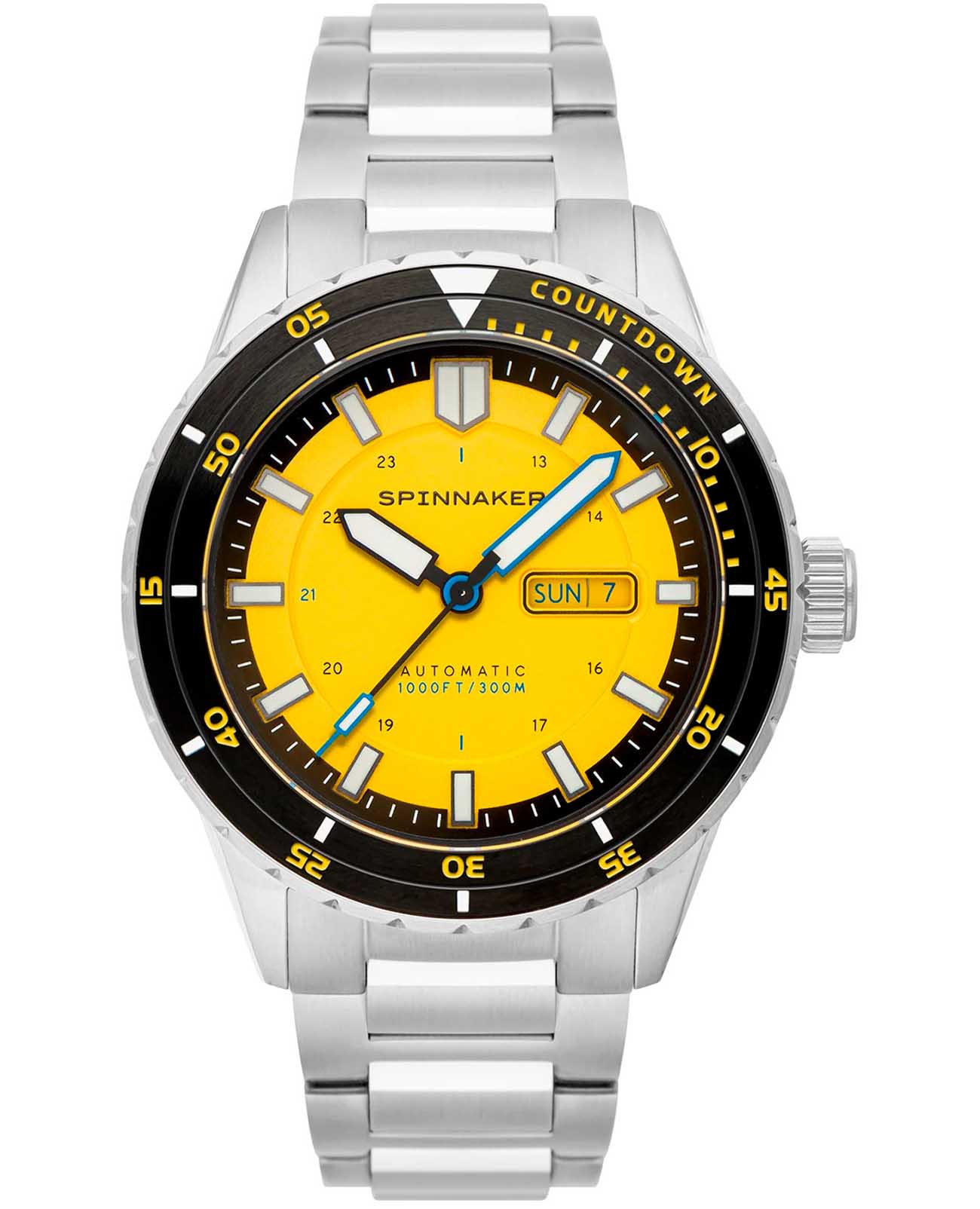 Мужские итальянские часы Spinnaker Hass SP-5099-33 с надёжным автоматическим механизмом. Сапфировое стеклоСапфировое стеклоПрочный и надёжный материал из кристалла сапфира синтетического происхождения, характеризующийся особой твёрдостью и устойчивостью к царапинам и повреждениям. с антибликовым покрытиемАнтибликовое покрытиеСлой оксида металла в 0,13-0,3 микрон, благодаря которому стекло часов не бликует и не отражает свет. Антибликовое покрытие уменьшает отражение света в 10 раз, обеспечивая отличную читаемость показателей циферблата., устойчивое к появлению царапин и обладающее высокой прозрачностью. Класс водозащиты: 300 метров, позволит плавать, нырять и заниматься другими водными видами спорта. Корпус часов изготовлен из нержавеющей стали с поворотным безелемБезельВнешний ободок, закрепляющий стекло. В спортивных часах так называется поворотное кольцо с делениями на циферблате, выполняет роль таймера – замеряет отрезки времени на шкале. Неподвижный безель – элемент декора. Однонаправленно вращающийся безель на дайверских часах позволяет фиксировать моменты погружения и выныривания на поверхность. с IP-покрытиемIP-покрытиеМетод ионного напыления. Демонстрирует повышенную устойчивость к истиранию, окислению и химическим веществам. Под воздействием высокого давления и температуры около 1500°C молекулы металла надёжно соединяются с частицами корпуса часов.. Браслет выполнен из нержавеющей стали на раскладной застёжкеРаскладная застёжкаТакой тип застёжки используется только на браслетах из металла. Она никогда не раскрывается полностью, происходит разделение на 2 и более частей. Раскладывающая застёжка снизит вероятность потери часов к минимуму.. Стрелки и метки с люминесцентным покрытиемЛюминесцентное покрытиеПозволяет считывать показания времени в темноте. Производители наносят на стрелки, часовые индексы, безель или поверхность циферблата светонакопительный состав, дающий холодное свечение.. Окошко дня недели и даты находится в положении 3 часа.